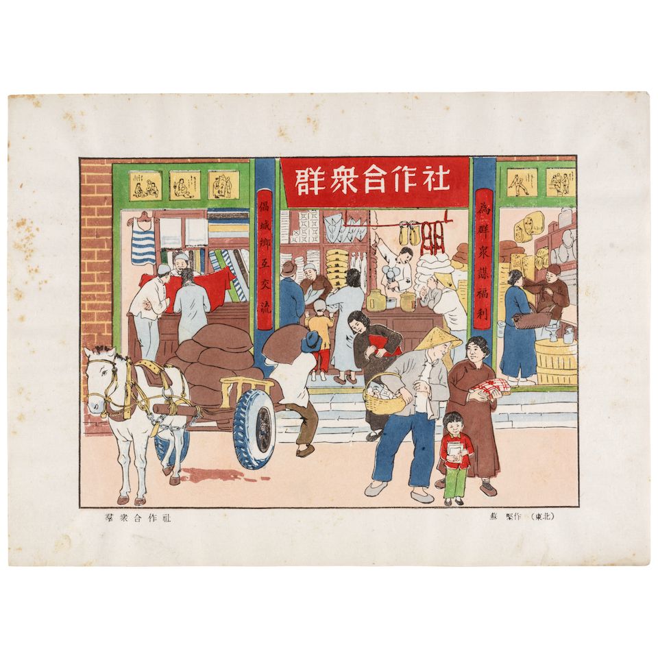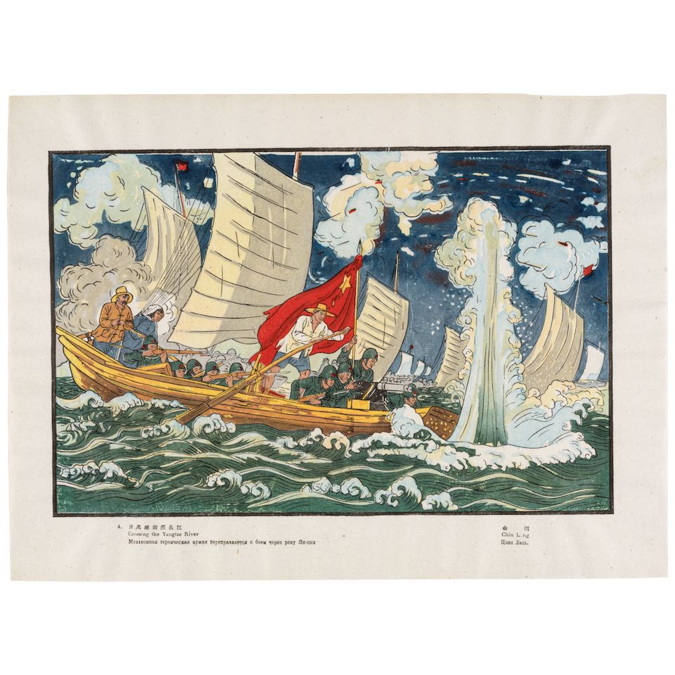 One volume, twenty-two loose color woodblock prints, with four color lithograph prints, each print captioned in Chinese, several prints also captioned in Mongolian, with a forward in English and Russian, and an English cataloging of "The Marriage of the River-God"