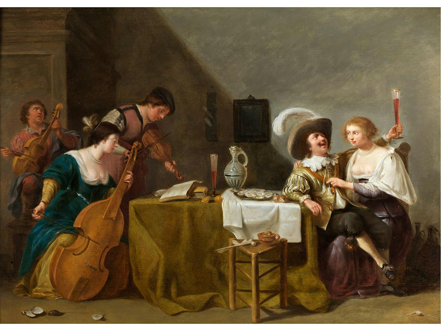 FRÖHLICHE MUSIZIERENDE GESELLSCHAFT IN EINEM INTERIEUR