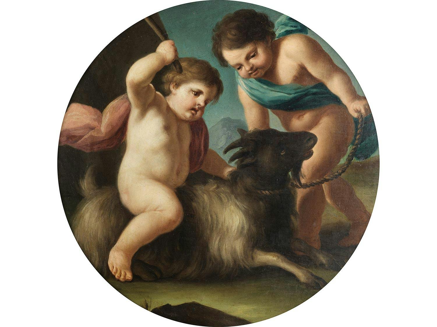 ZWEI PUTTEN MIT ZIEGE