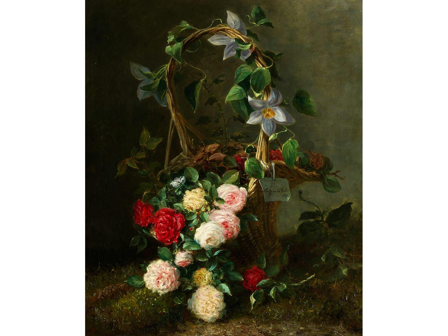 KORB MIT ROSEN UND CLEMATIS