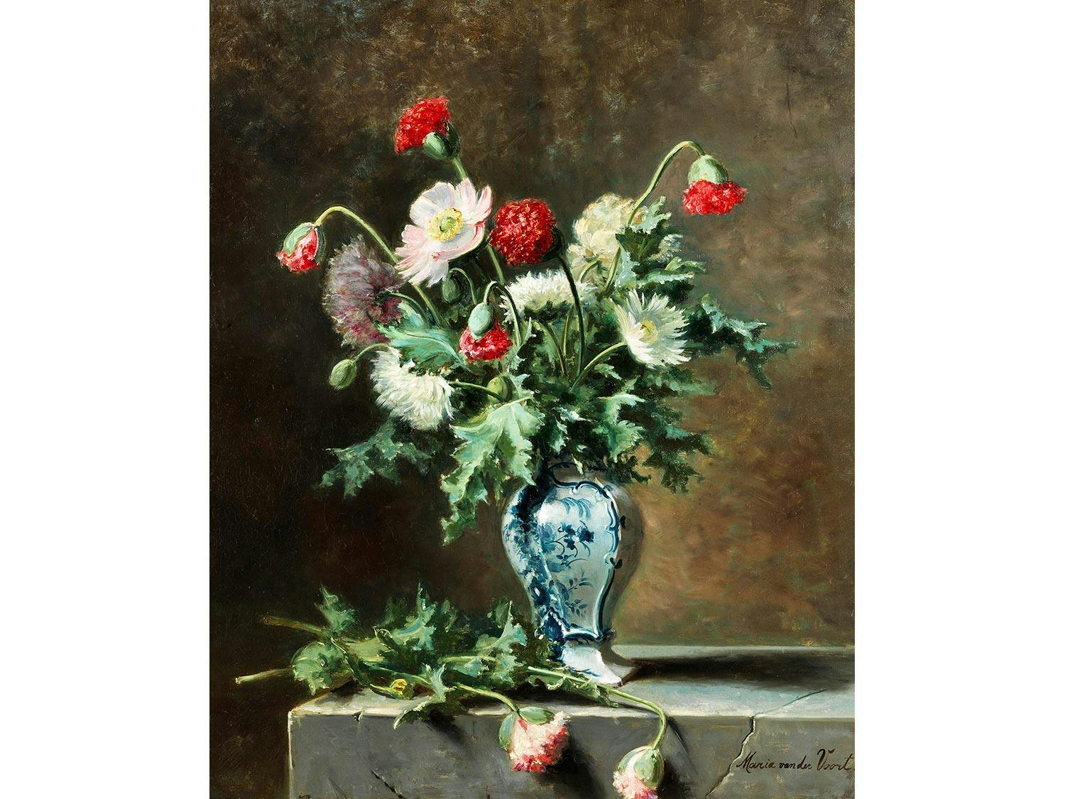 BLUMENSTILLLEBEN MIT CHRYSANTHEMEN UND MOHN