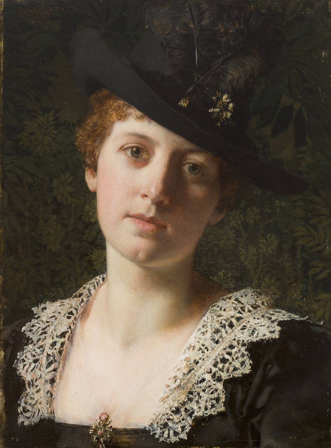 Portrait of a Woman in a Black Hat with Feathers