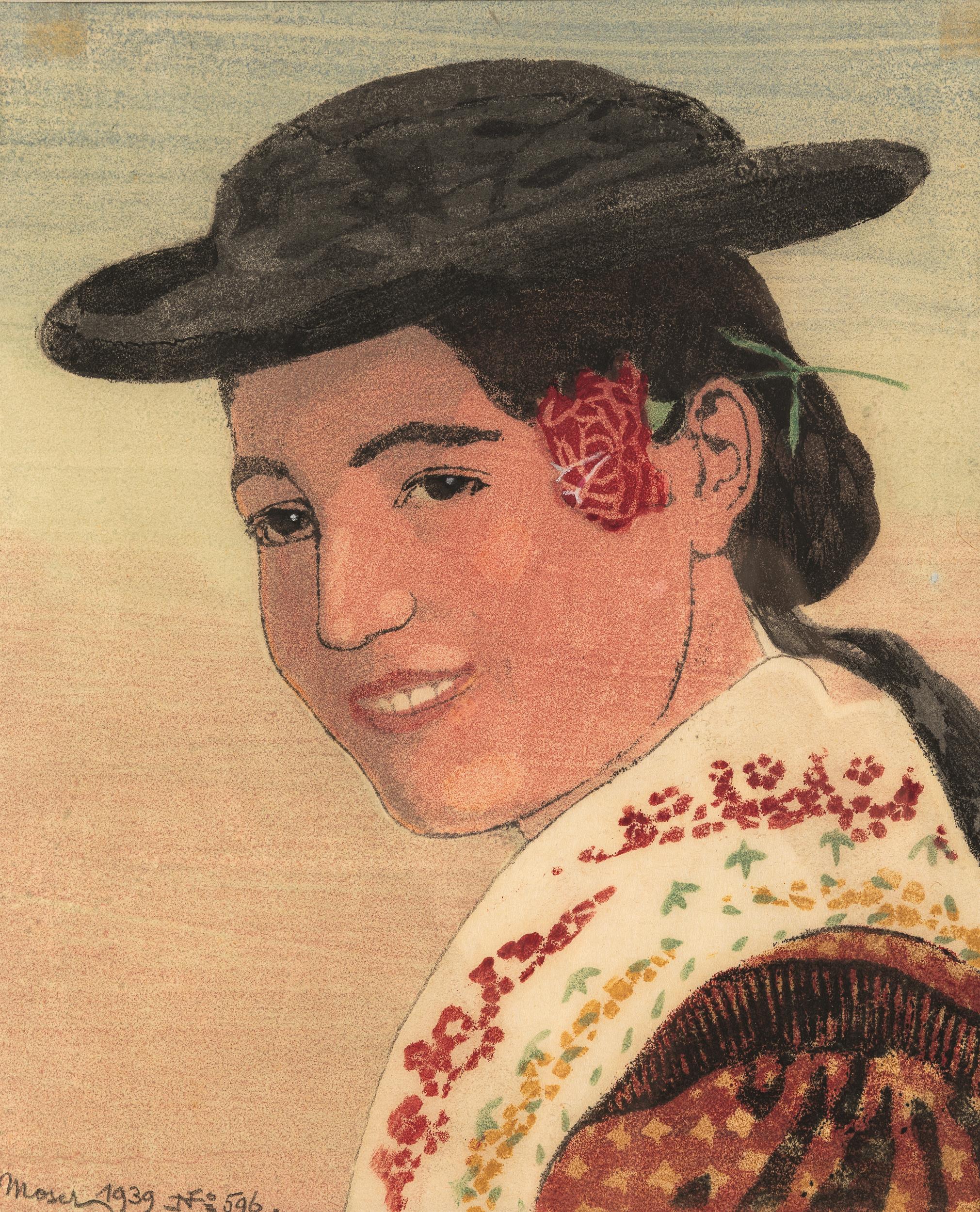 Konvolut: Zwei Farbholzschnitte (Tiroler Bauernmädchen II/Sarner)