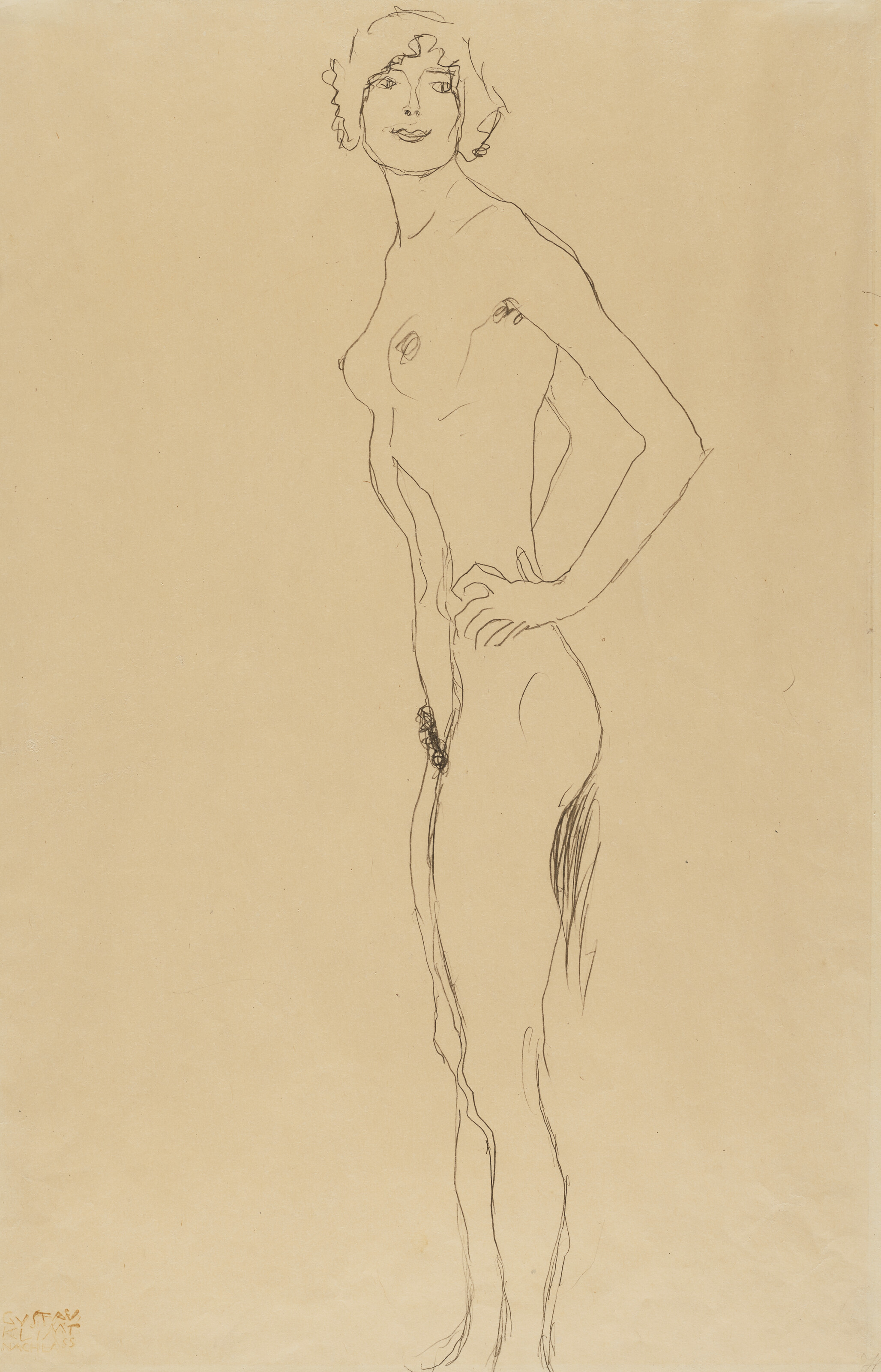 Sizender Akt von Vorne, den linken Arm auf das rechte Knie gelegt (Seated Nude, Viewed from the Front, Her Left Hand Resting on Her Right Knee), 1913