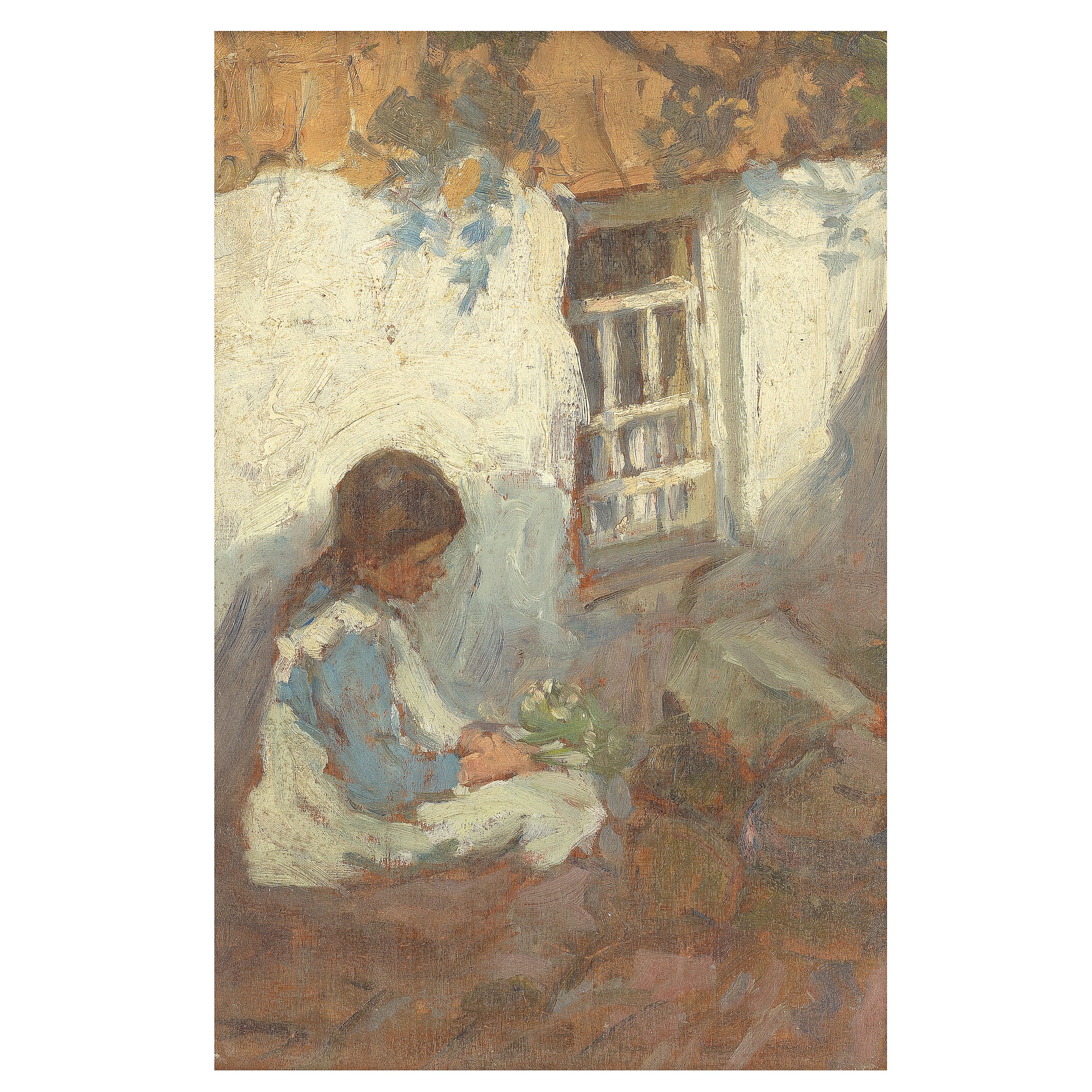 Little girl sat by a window, with another sketch on the reverse