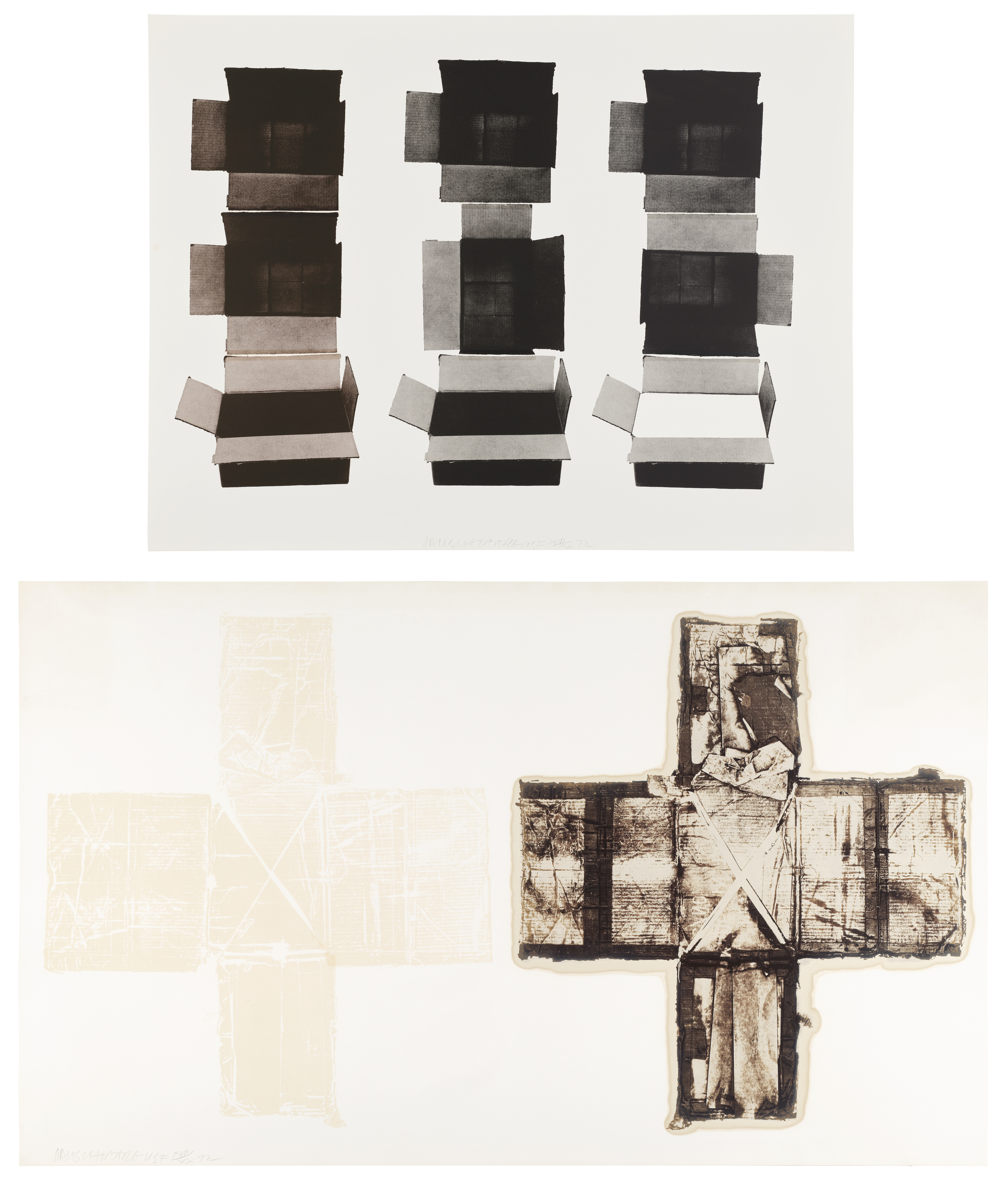 One lithograph and screenprint and one lithograph and sepiaprint, on wove paper, with full margins