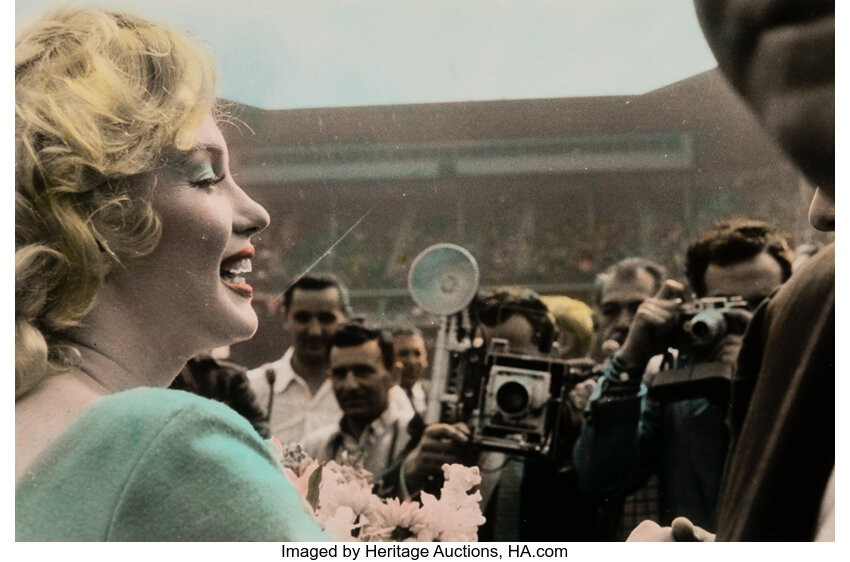 Marilyn Monroe at the ceremonial kick off for a match between a combined Is...
