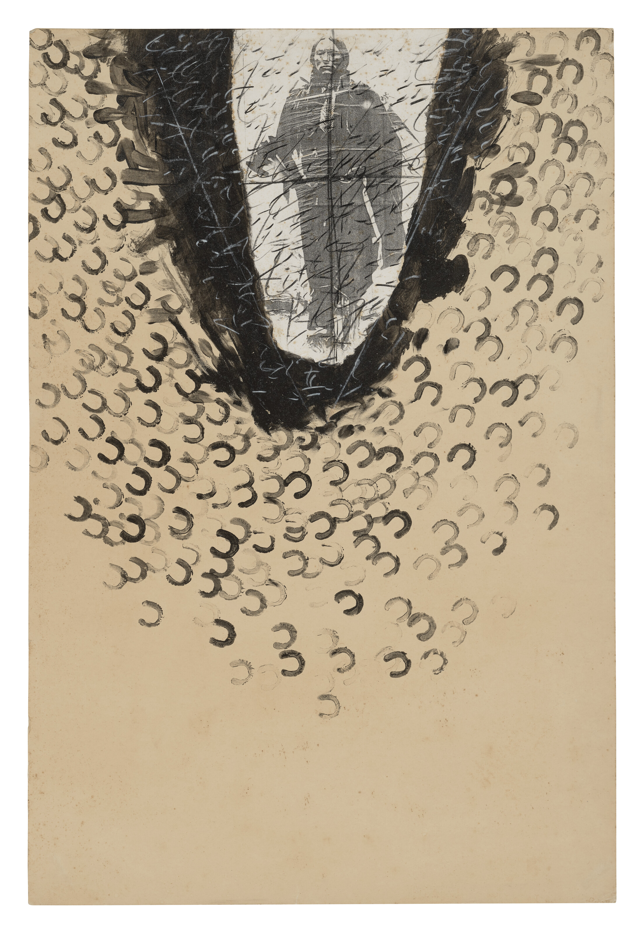 photo silkscreen, collage, crayon and ink on paper