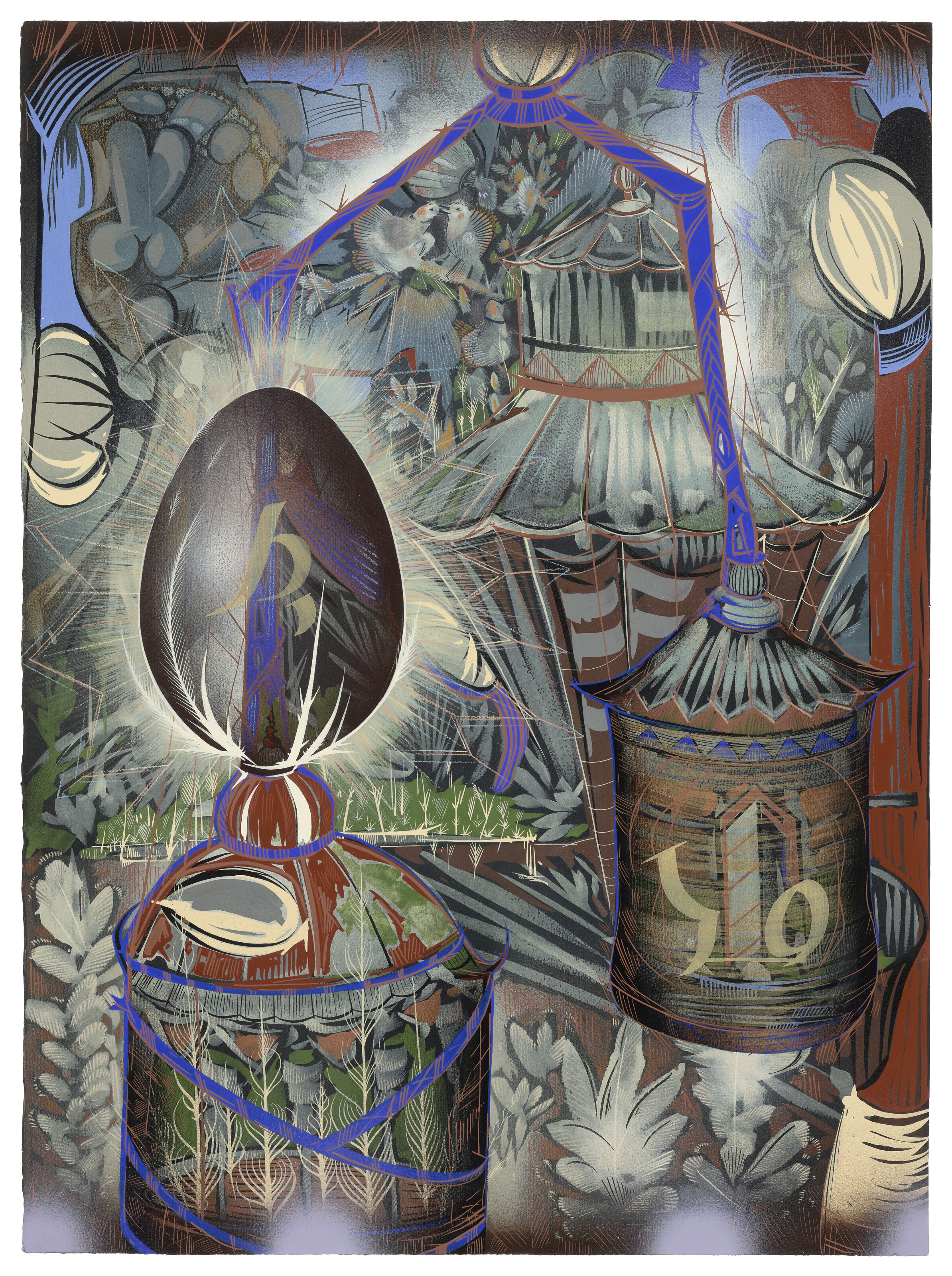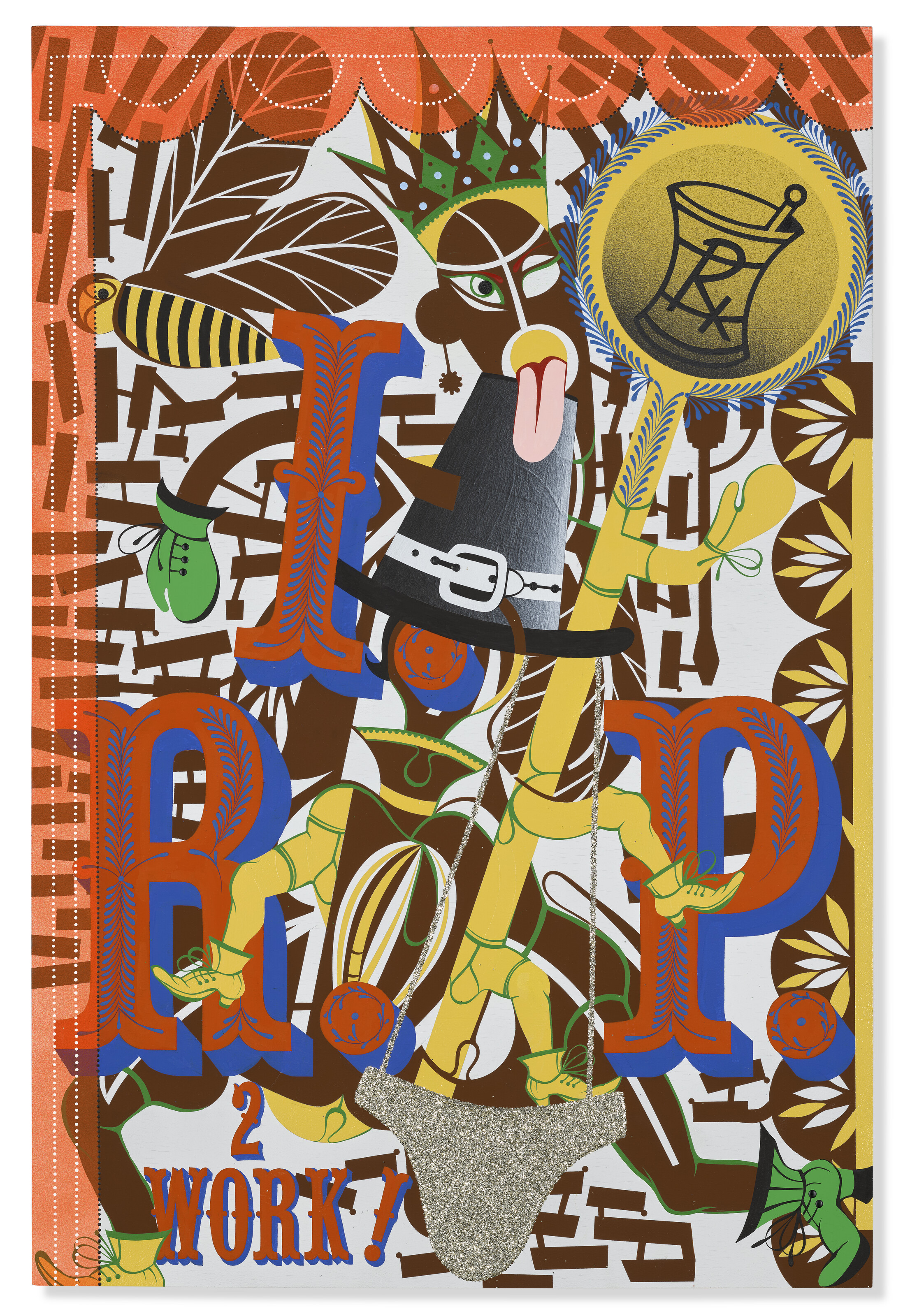 matte oil, aerosol lacquer and Cel-vinyl on gessoed paper