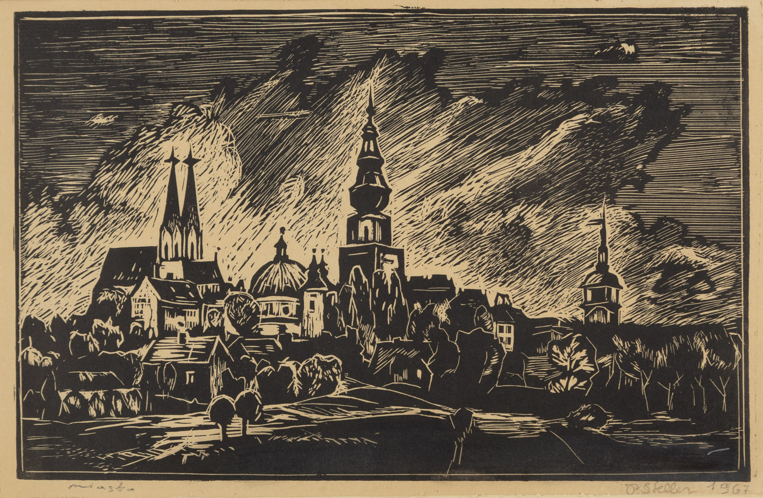 woodcut/paper