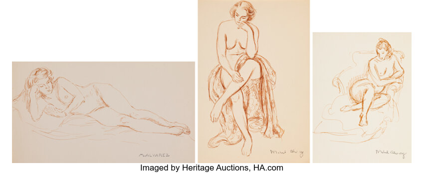 Nude Seated in Draped Chair, Seated Nude, Lounging Nude (three works)