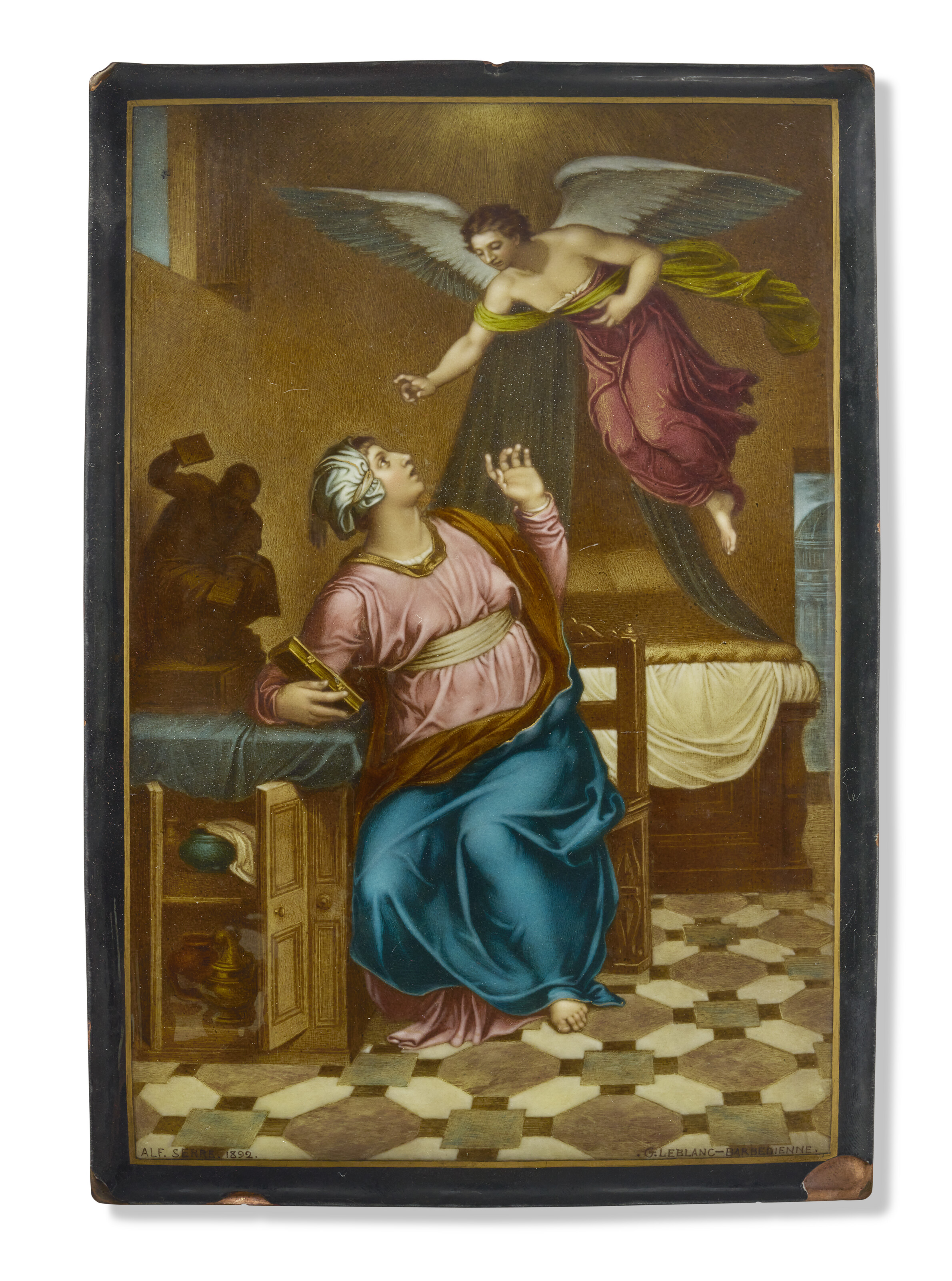 plaque rectangulaire en émail peint polychrome