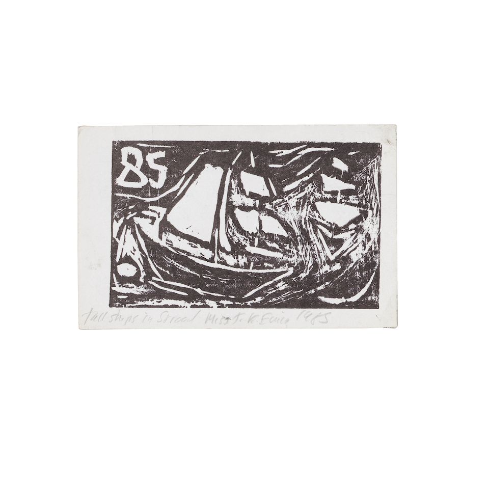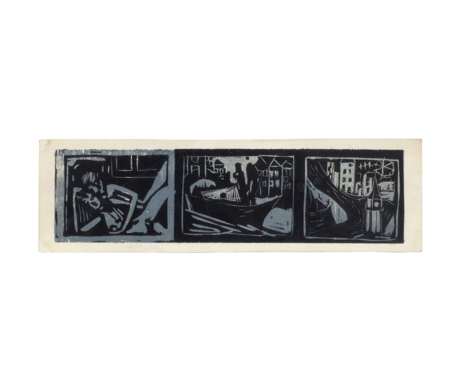Three woodcuts in colours, circa 1985, printed on one sheet of wove paper, with margins, framed