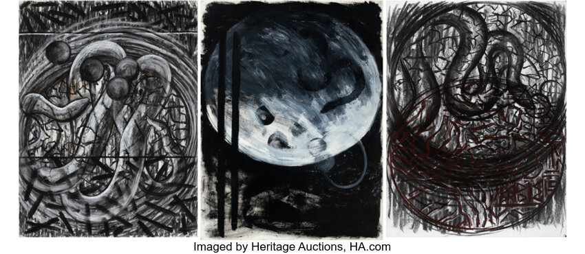 Charcoal and pastel on paper; charcoal, pastel, and acrylic on paper