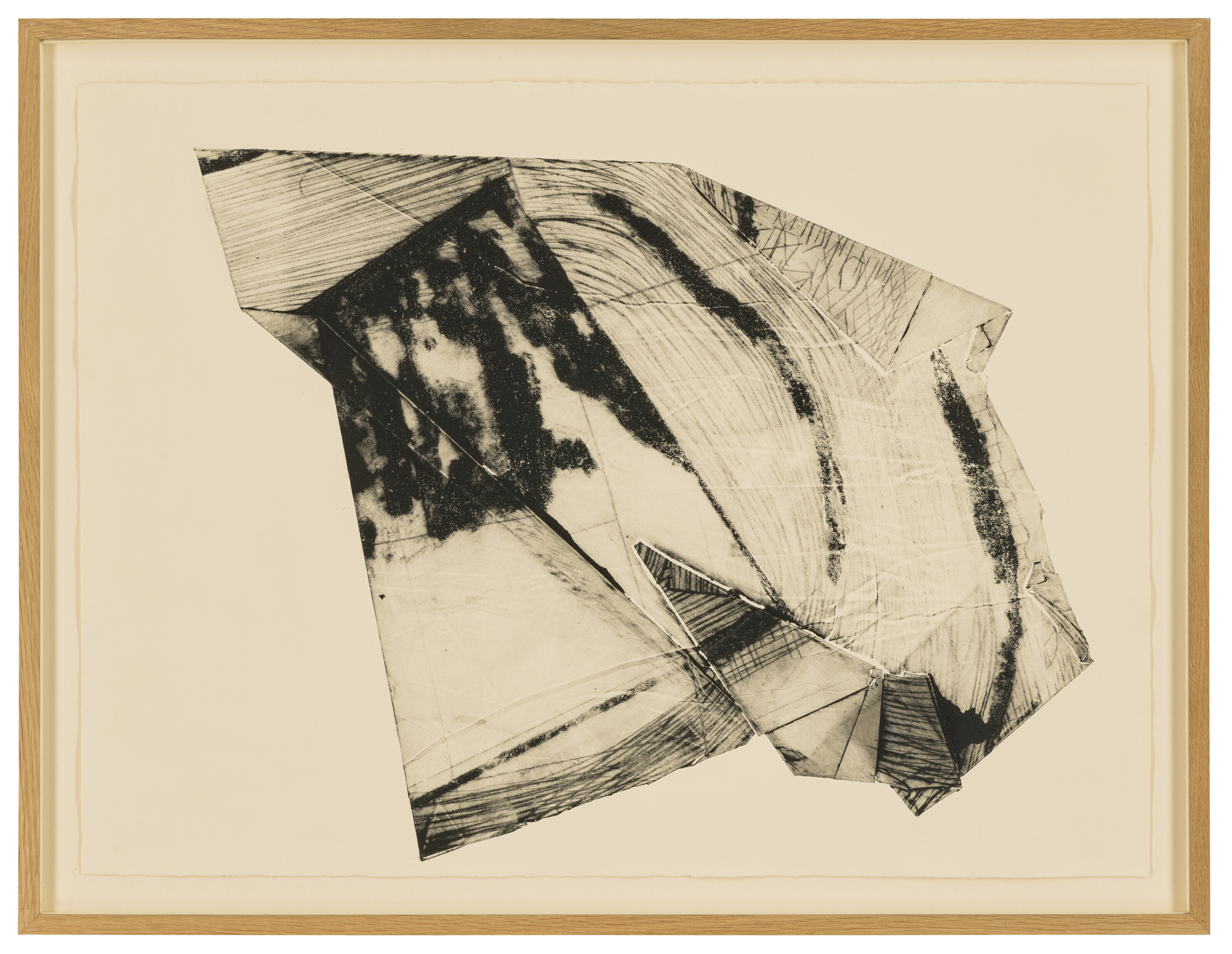 folded lithographic plate print, drypoint and carborundum, pressed twice