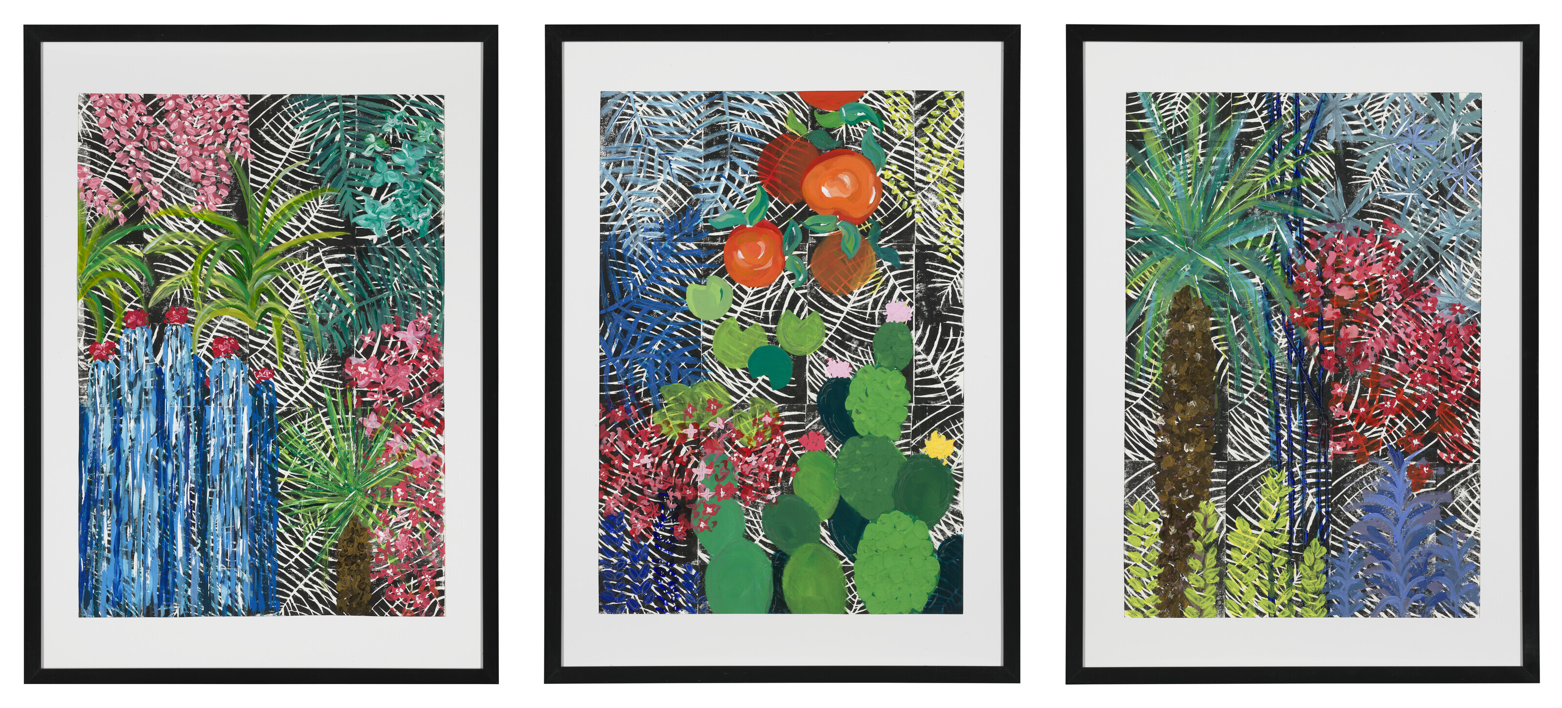 lino print and acrylic on paper