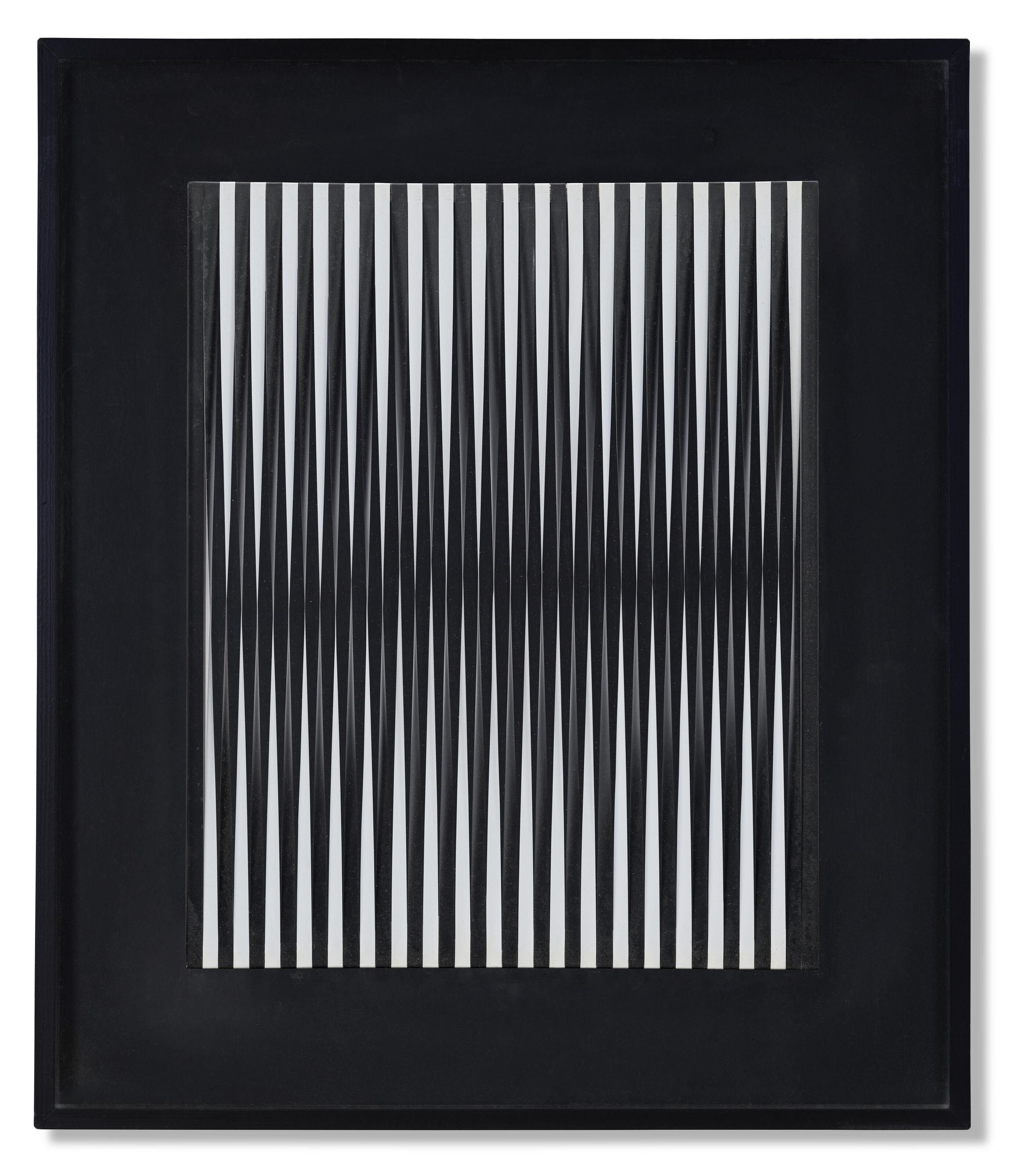 assemblage de polyvinyle et bois sur isorel peint; dans un cadre d'artiste