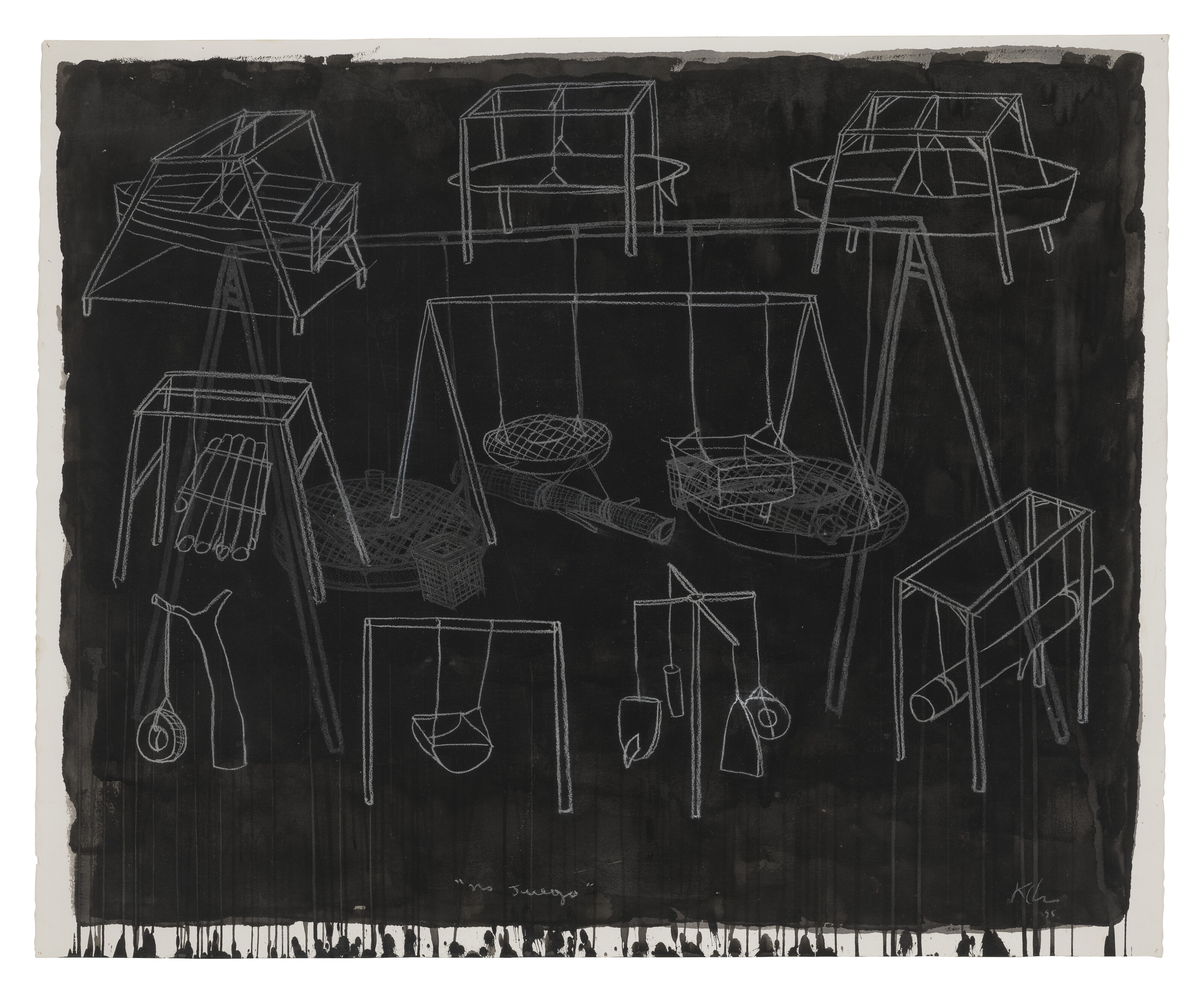 pastel and ink on paper