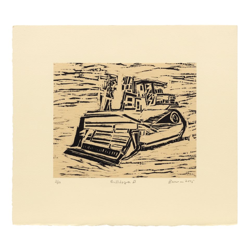 woodcut printed in black on Kozo paper and mounter on arches cover buff paper