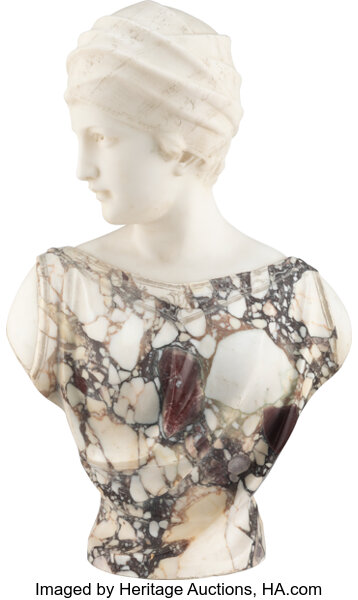 A Guglielmo Pugi Carved Marble Bust: Woman in Turban