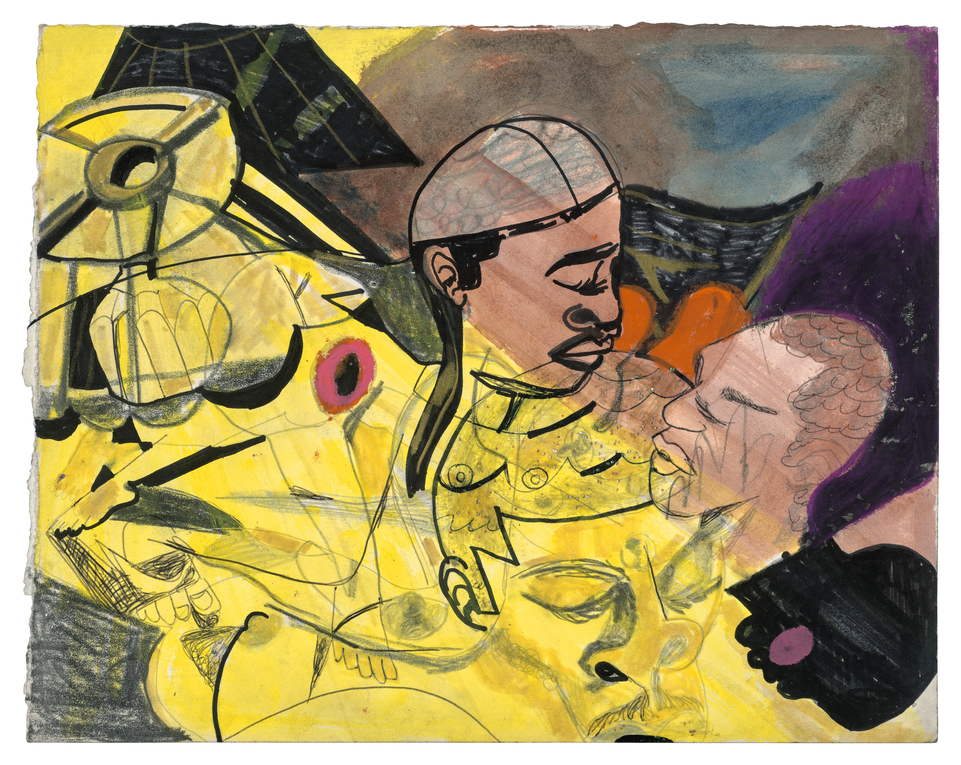 watercolor, glitter, graphite and marker on paper