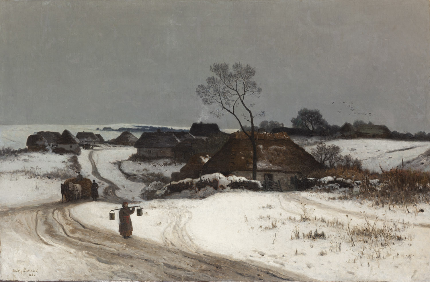 Winter landscape with a water carrier