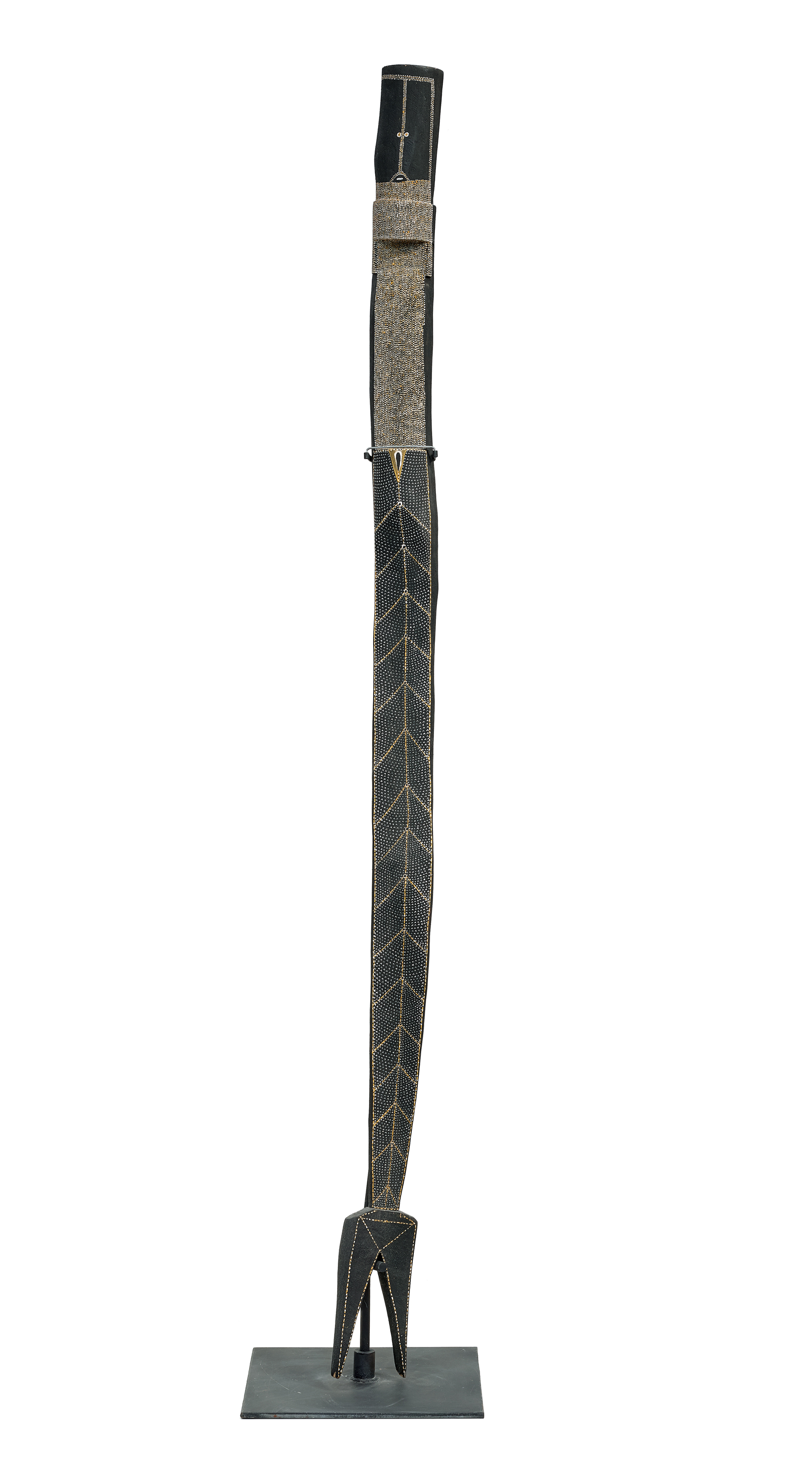 natural earth pigments with synthetic binder on carved kurrajong