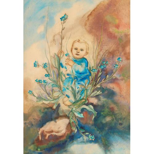 Gouache, Aquarell u. Bleistift auf Papier, auf Mkt.