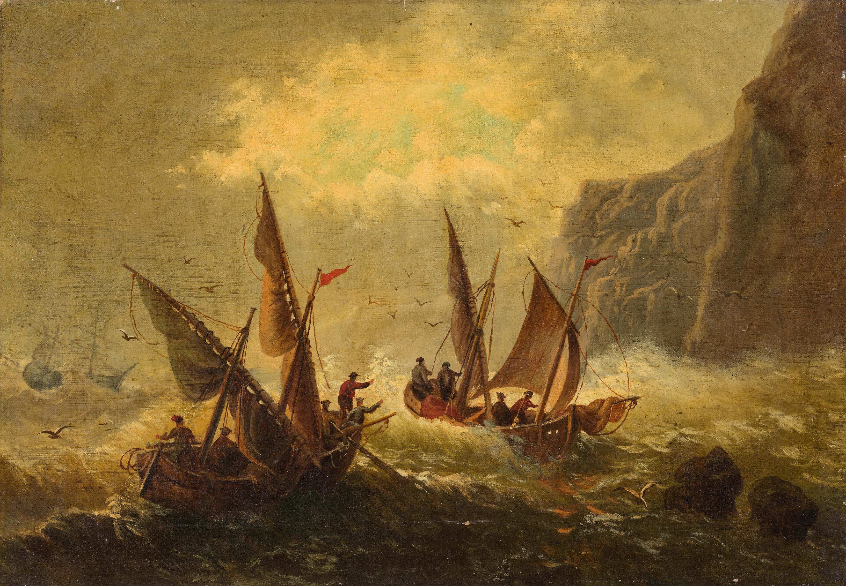 Italienische Fischerbarken bei hoher See
