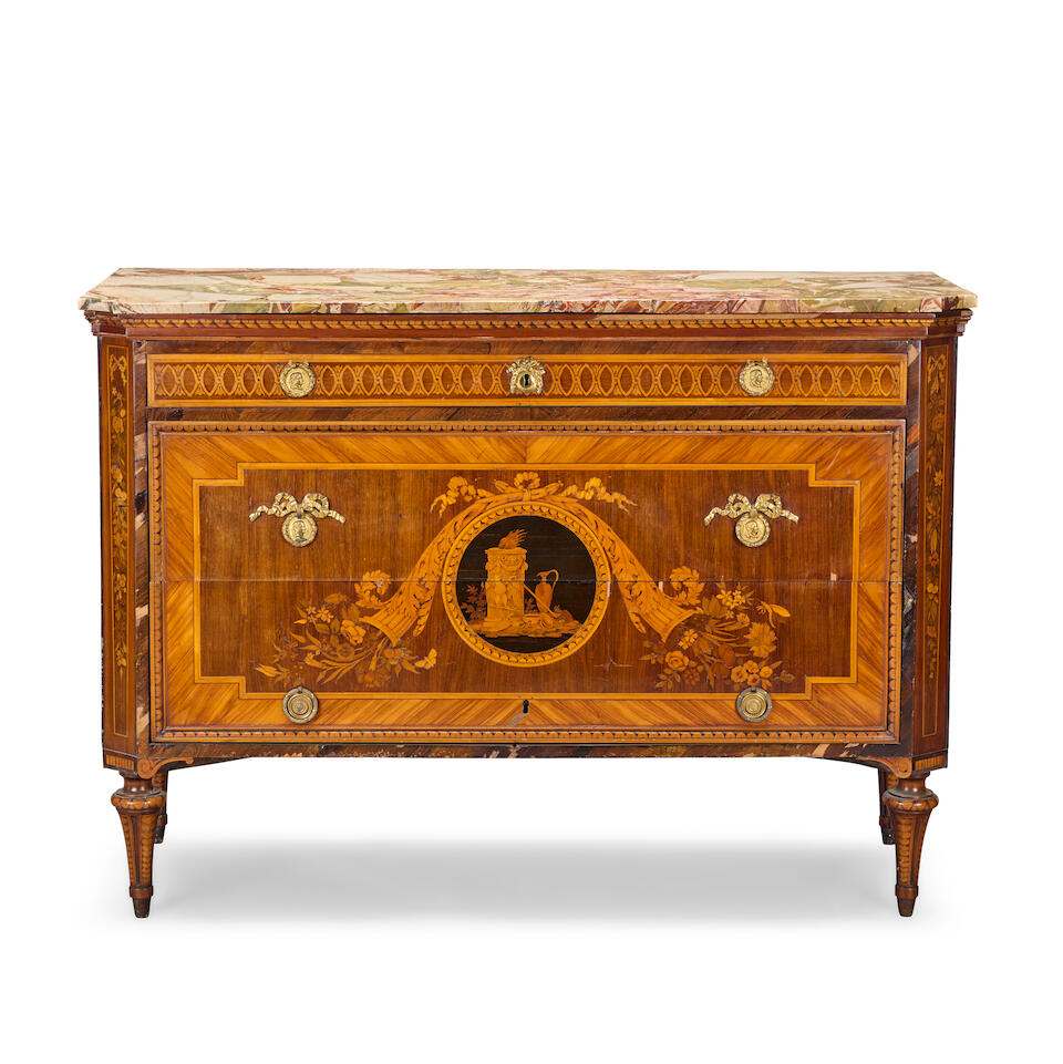 An exceptional Lombard early 19th century purplewood, mahogany, rosewood, tulipwood, mapl...
