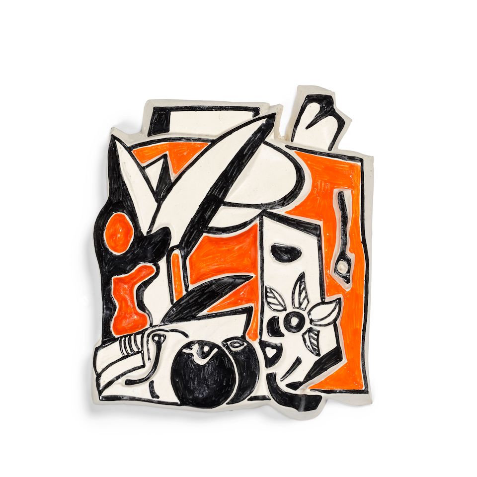 Partially glazed ceramic plaque, 1952, with the artist's ind...