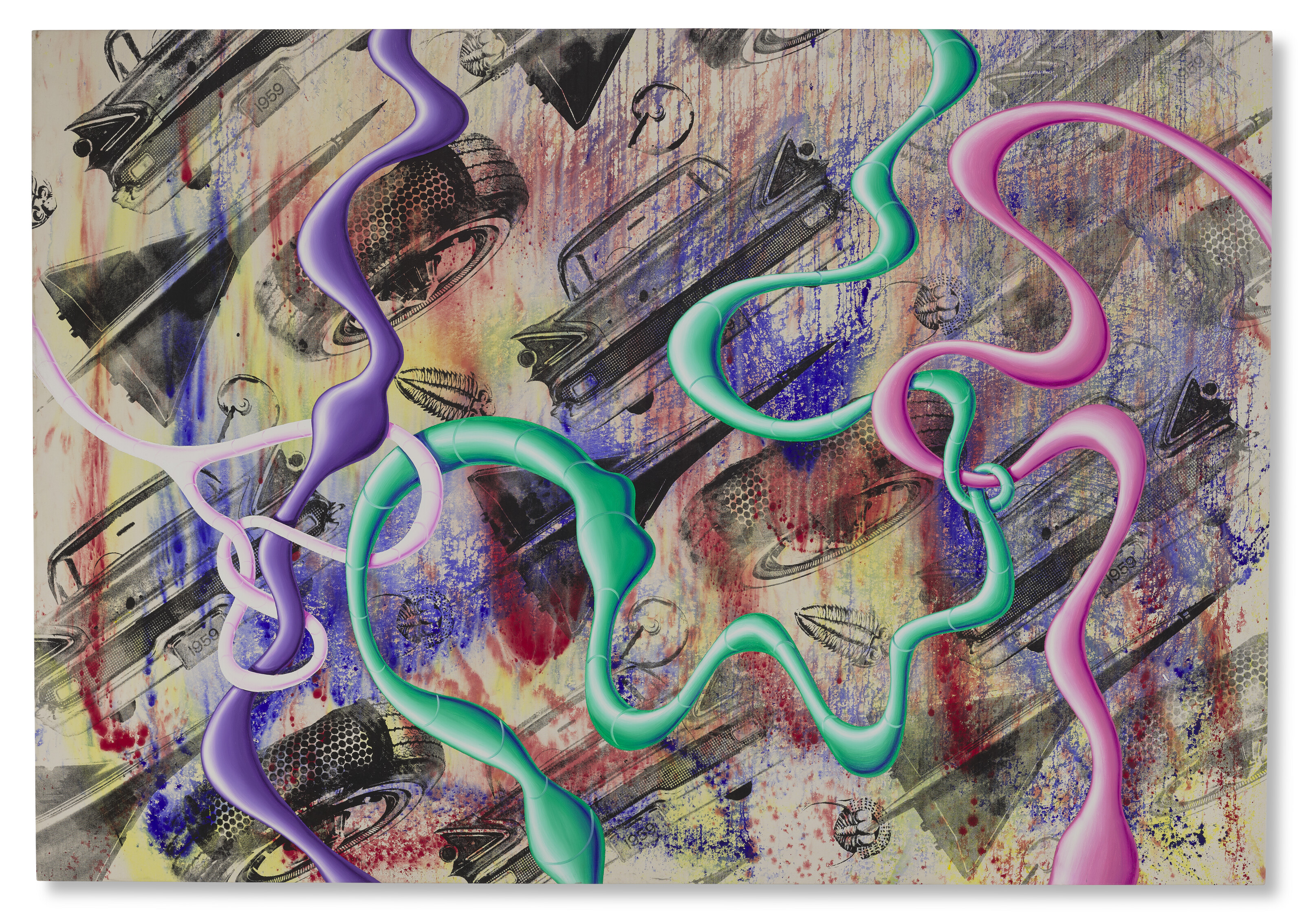 oil, acrylic and silkscreen ink on canvas