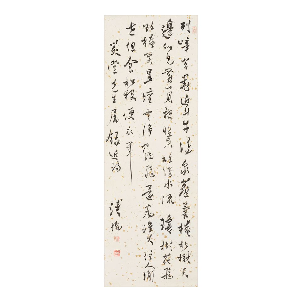 Hanging scroll, ink on gold fleck paper, inscribed by the ar...