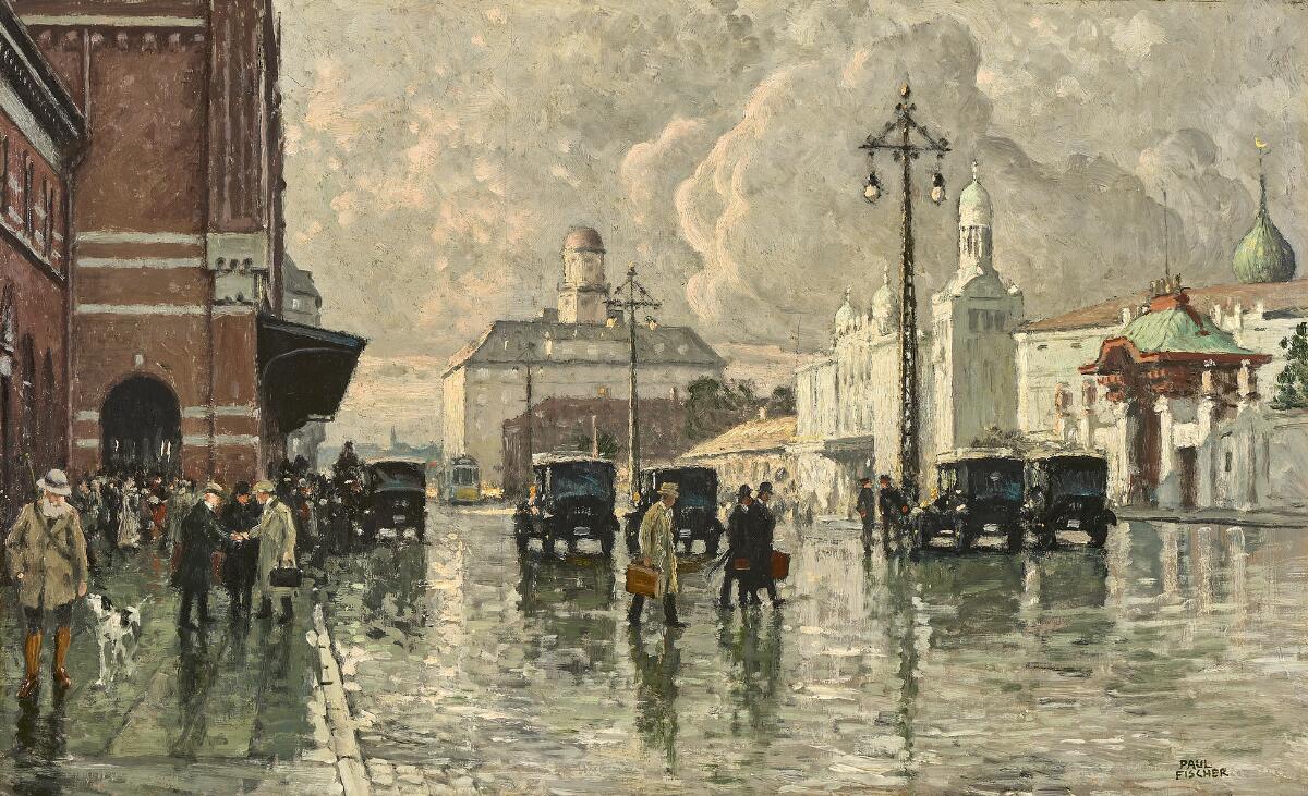View from Vesterbros Torv (Vesterbro Square) in Copenhagen with a man selli...