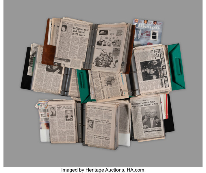Group of 5 binders filled with select newspaper clippings