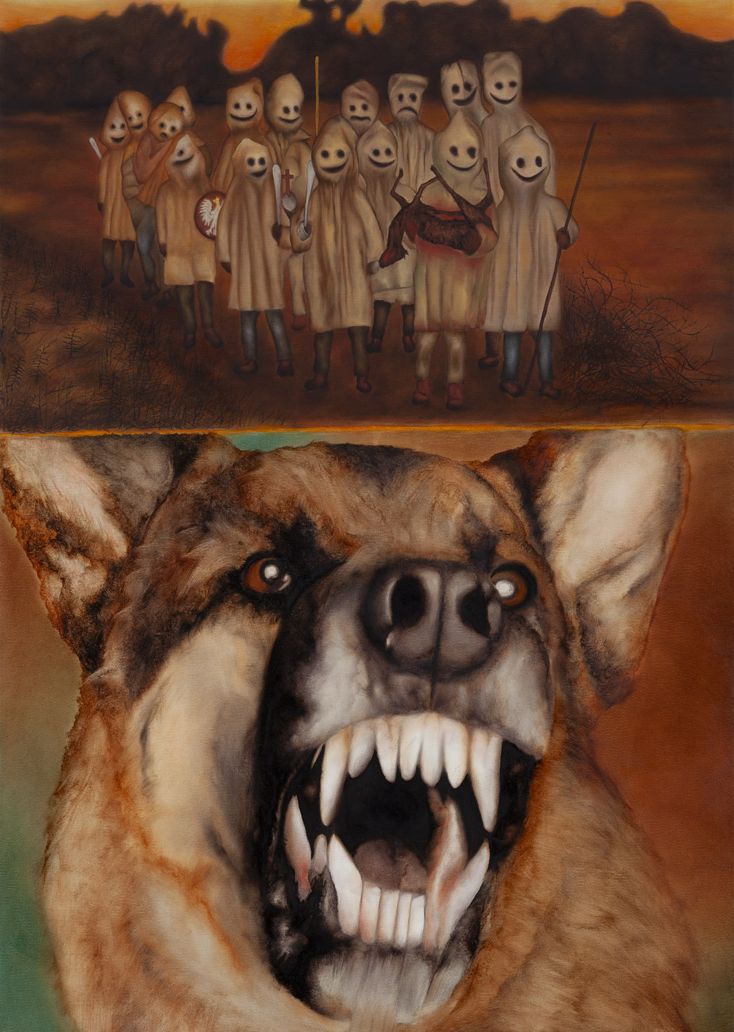 Oil and collage on paper mounted on panel