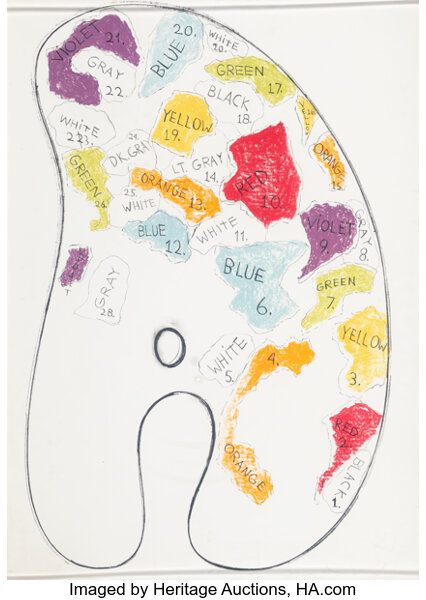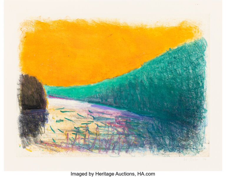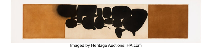 Aquatint, spit-bite and soft-ground etching in colors on wov...