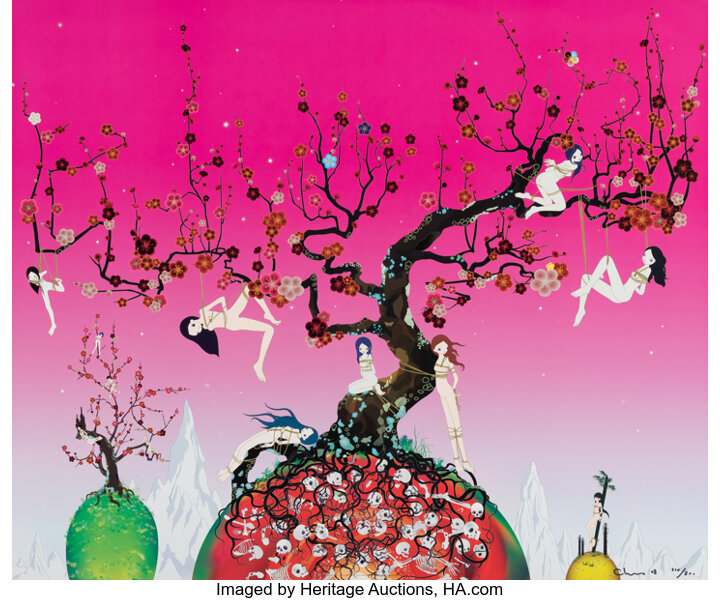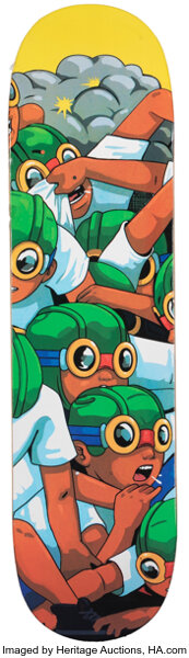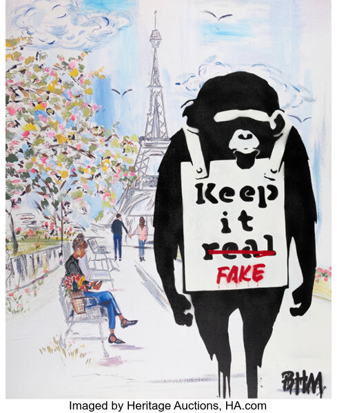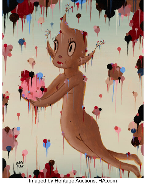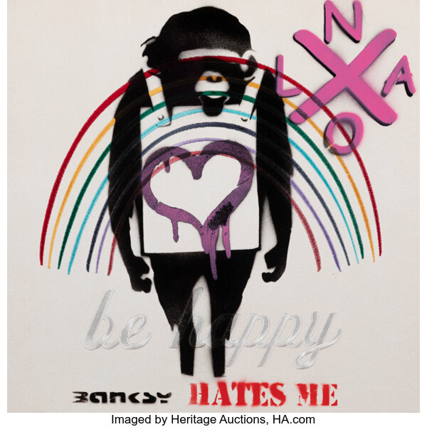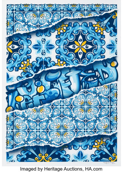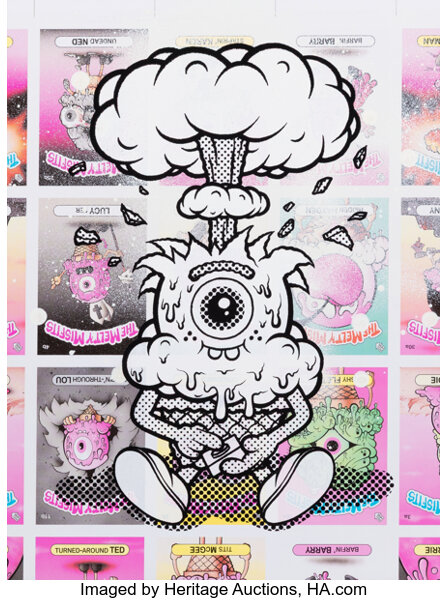Screenprint in colors and spray paint on recycled Buff Monst...