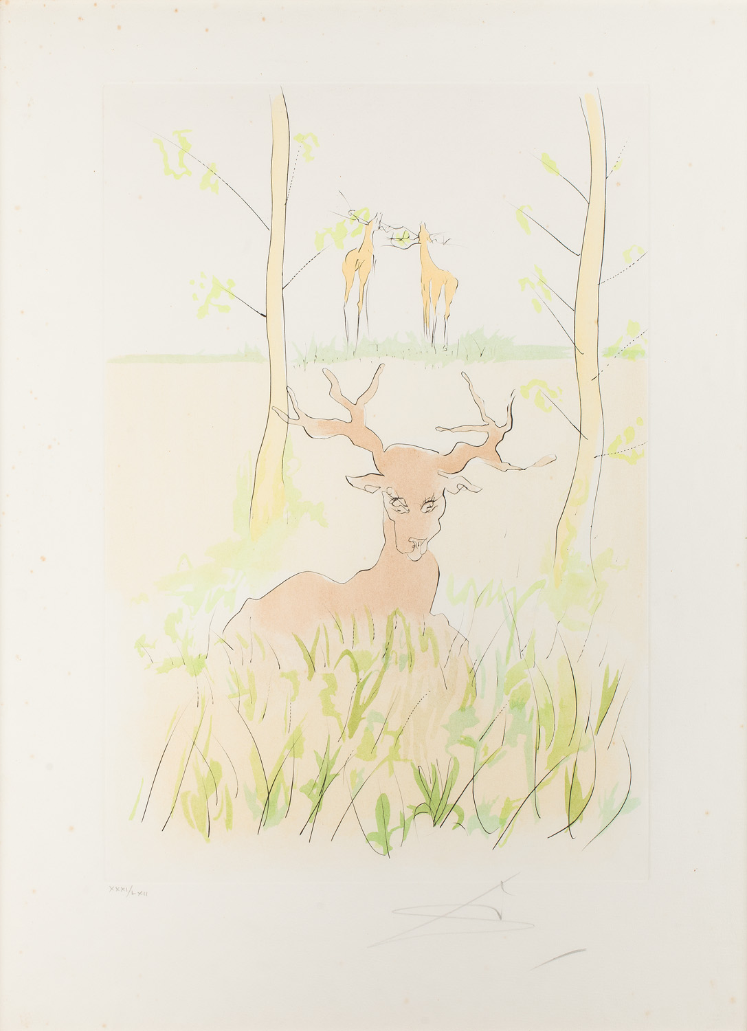 "The Stick Stag" z bajki "Jelonek przeglądający się w wodzie" ("Le Cerf ...