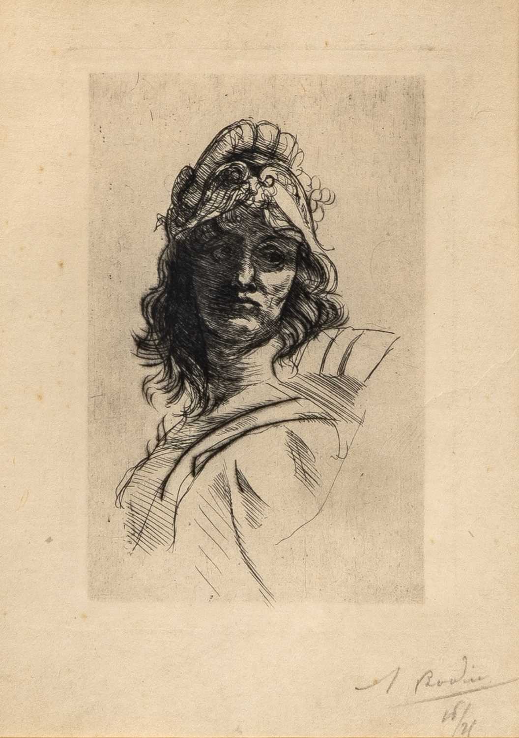 Very fine proof on thin oxidized japon (or essencé paper?), annotated "Imprimé par le graveur" and