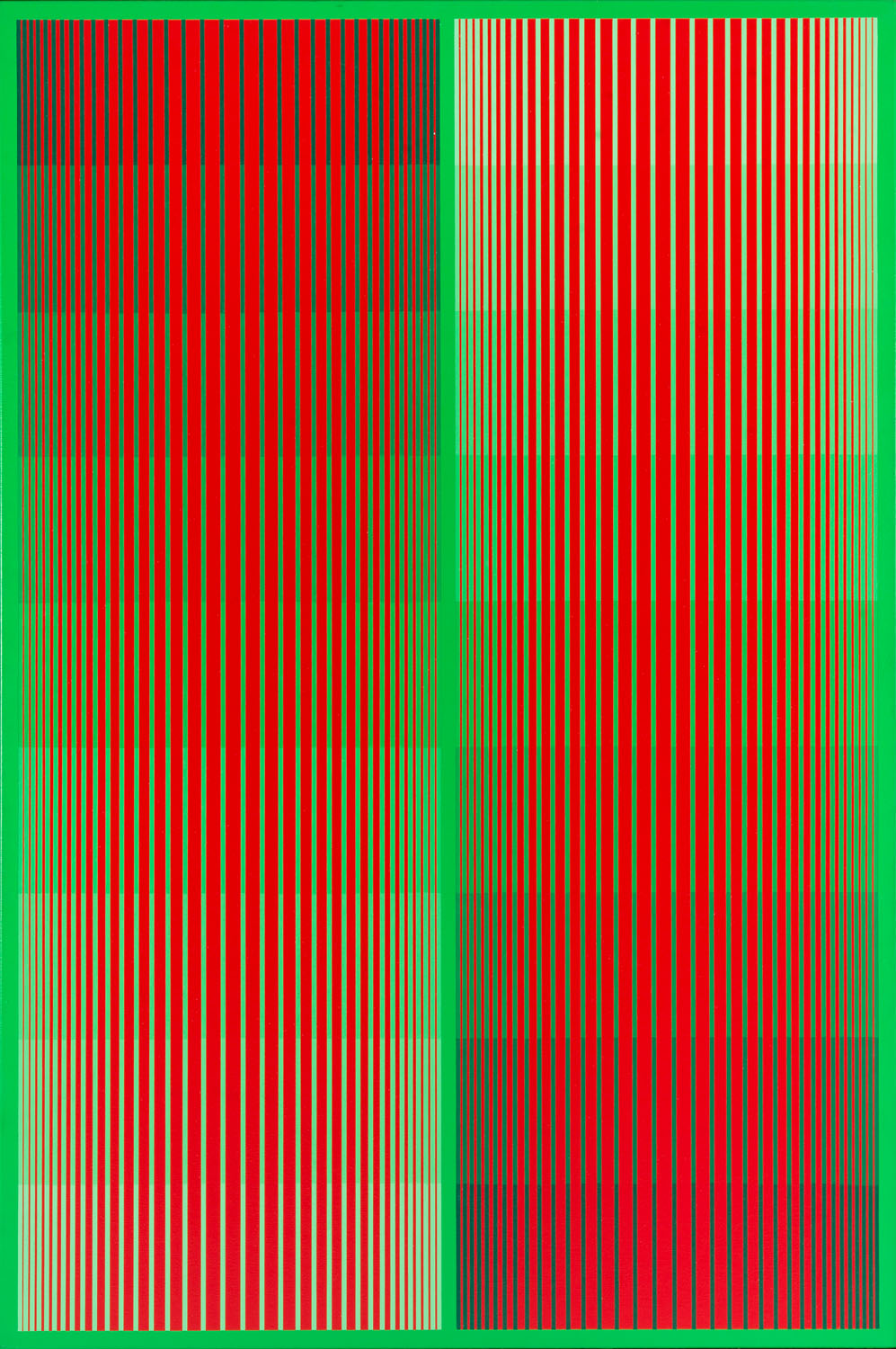 acrylic and plastic inserts on panel, in two parts, in artist's frame