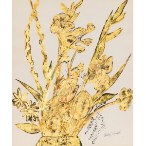 watercolor, gold leaf and ink on paper