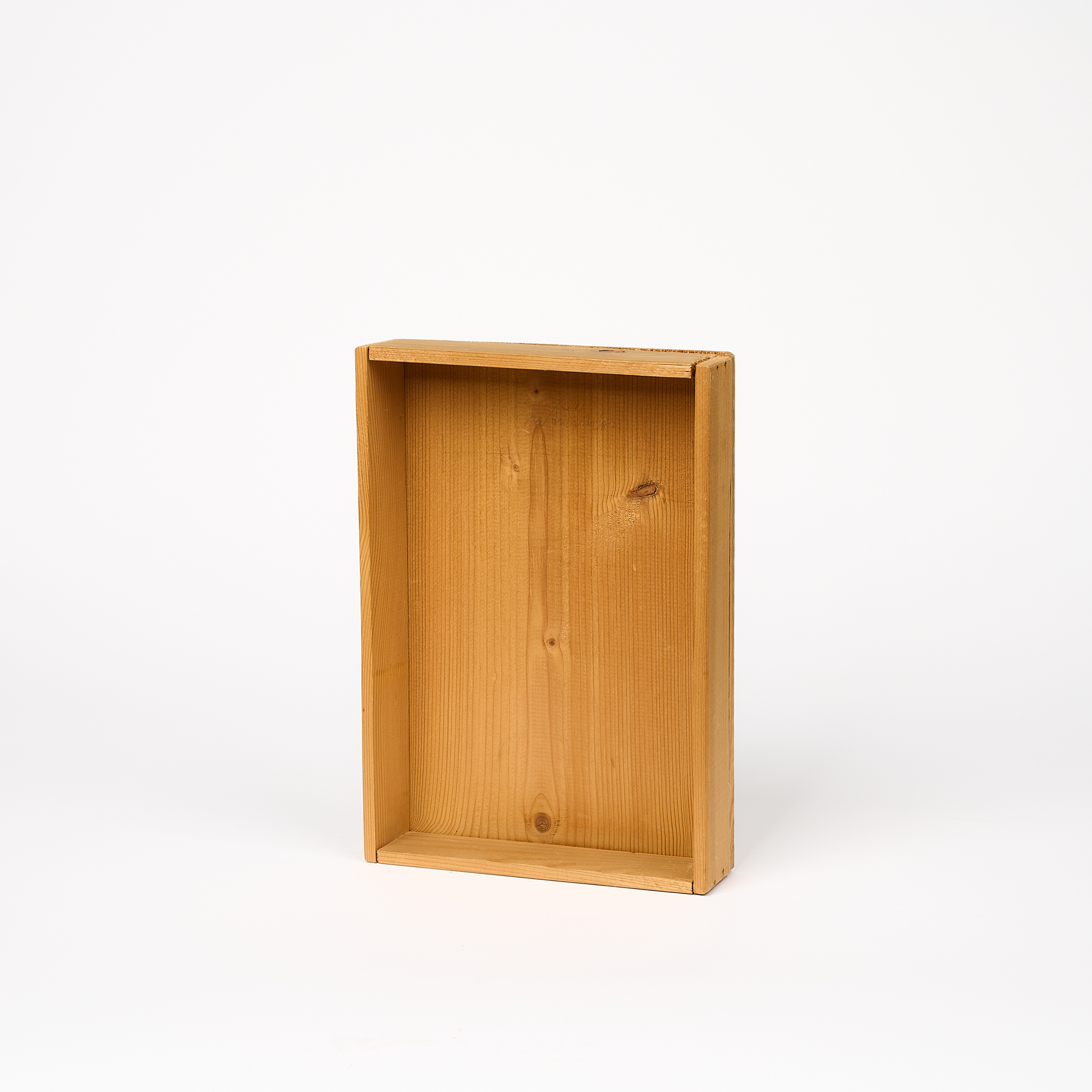Semi-transparent convex mirror over silver-coloured card. Beneath silver-coloured card. In display box