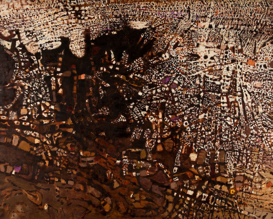 collage de gravures découpées, recomposées et réhaussées à l'huile sur papier Japon nacré