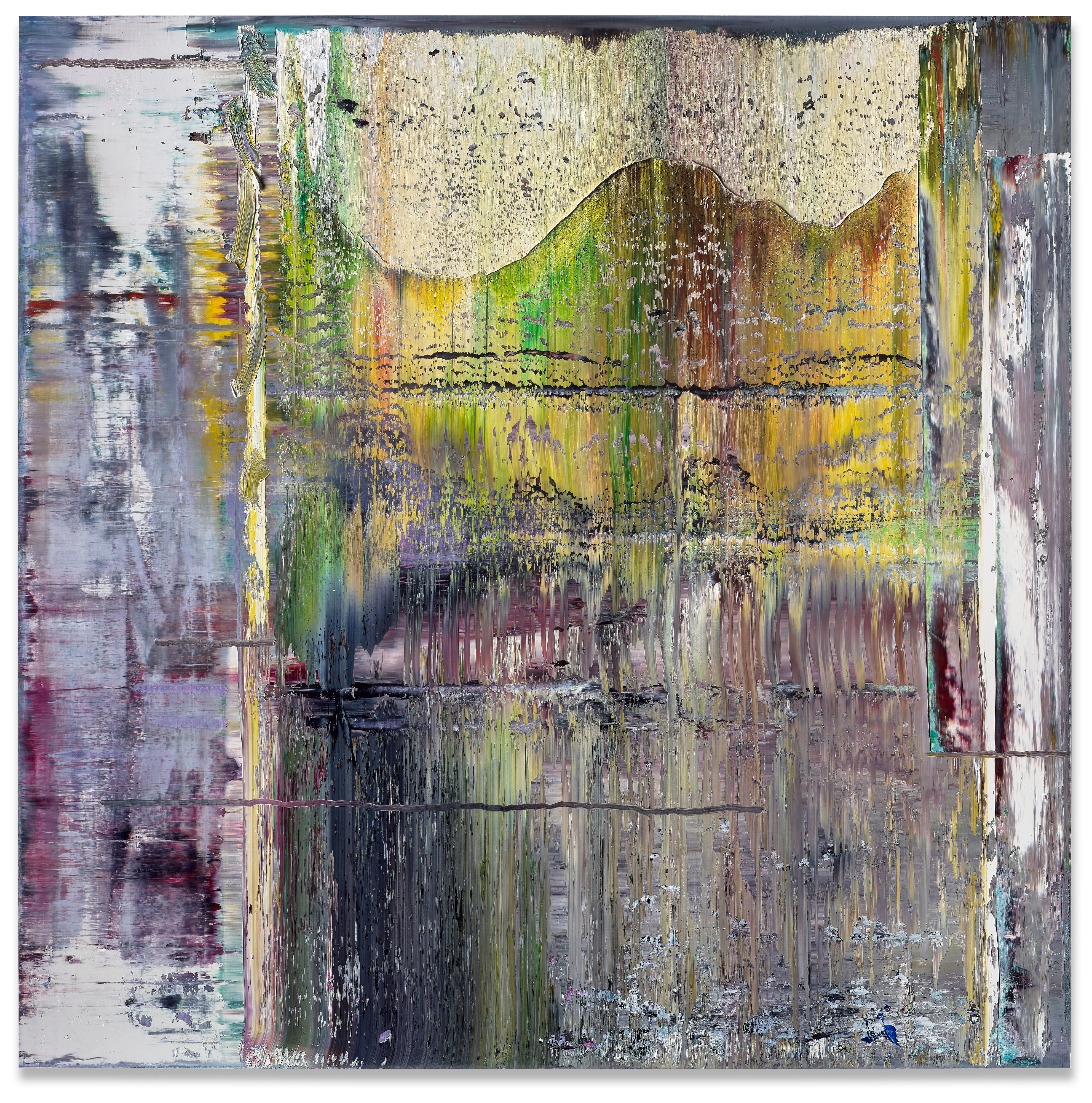 oil, alkyd, latex and nylon thread on linen mounted on panel