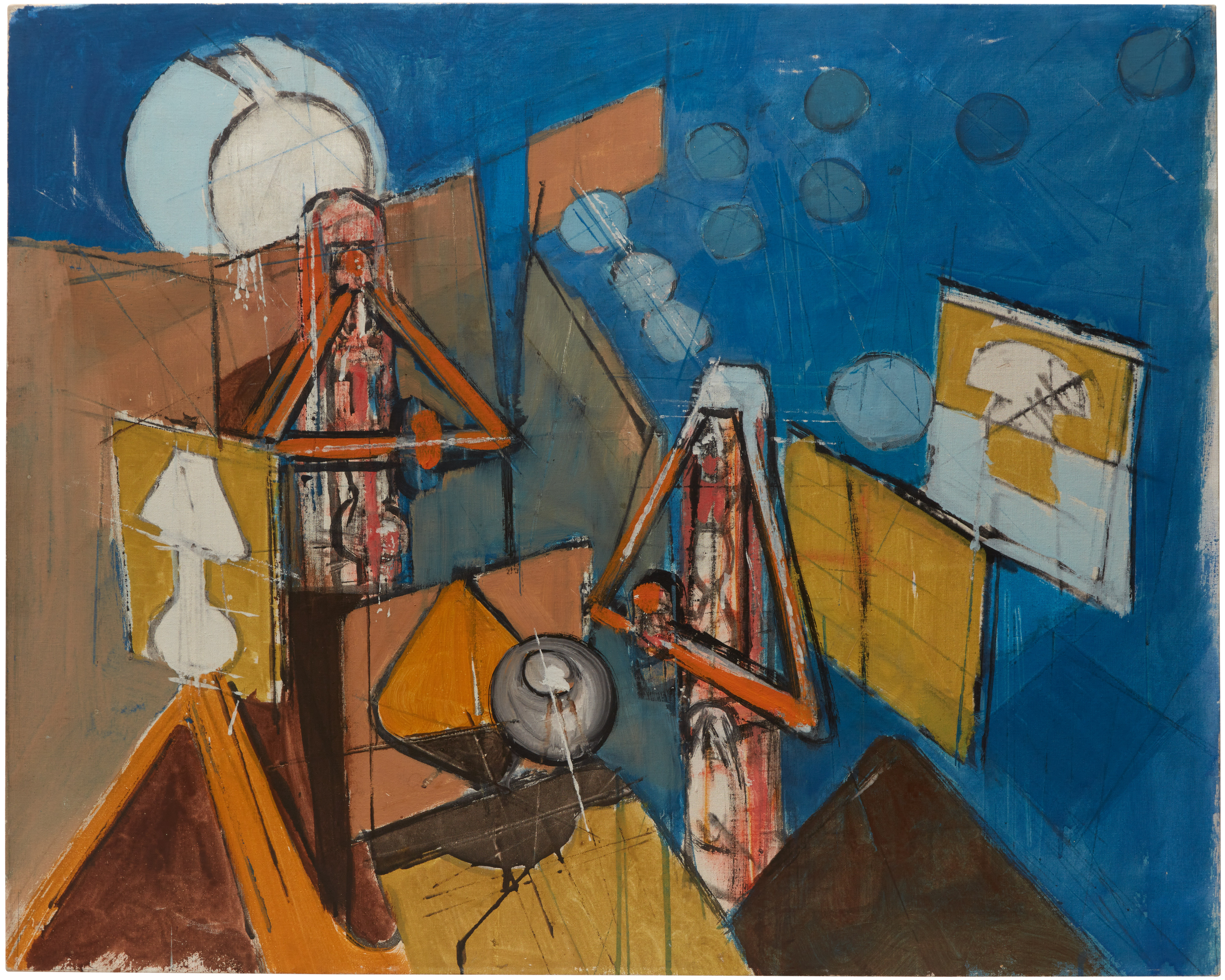 collage, gouache, watercolour, metallic paint, pen and India ink and pen and ink on card