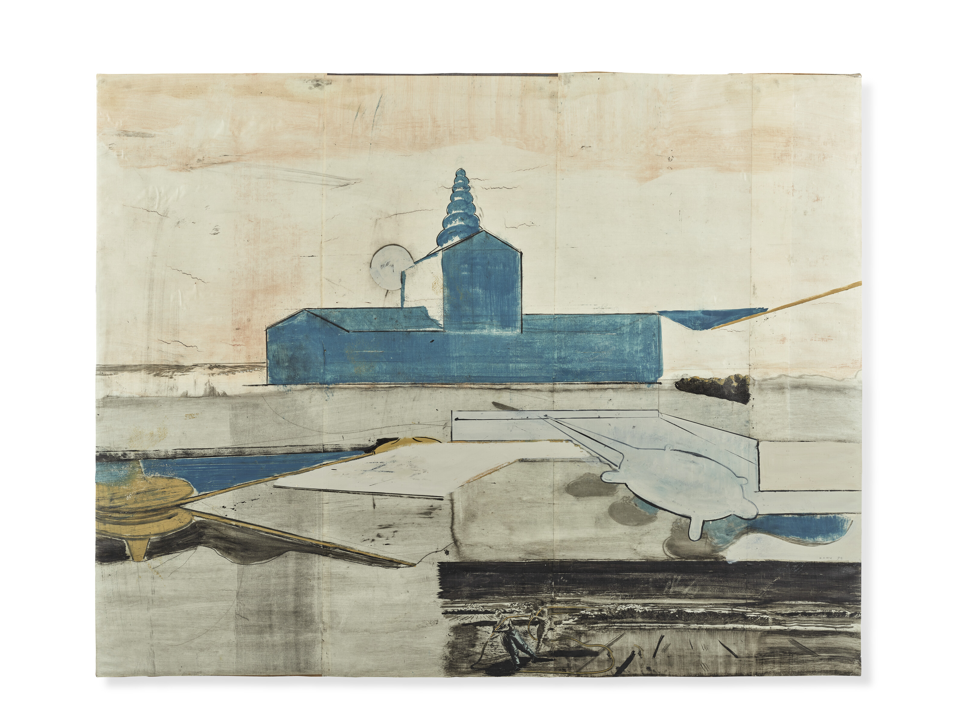 huile, acrylique, encre et crayon gras sur collage de papiers marouflés sur toile marouflée sur toile