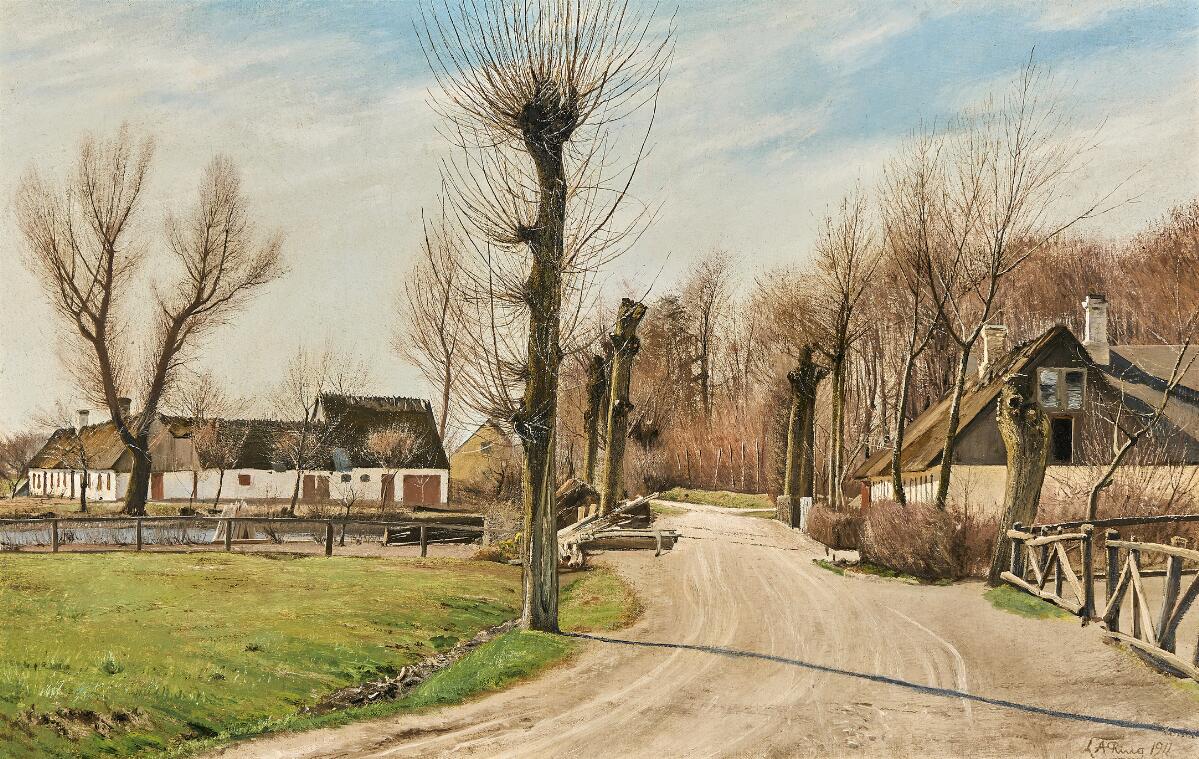 “Landsbygade. Slagteren sælger kød.” Village street in Vinderød