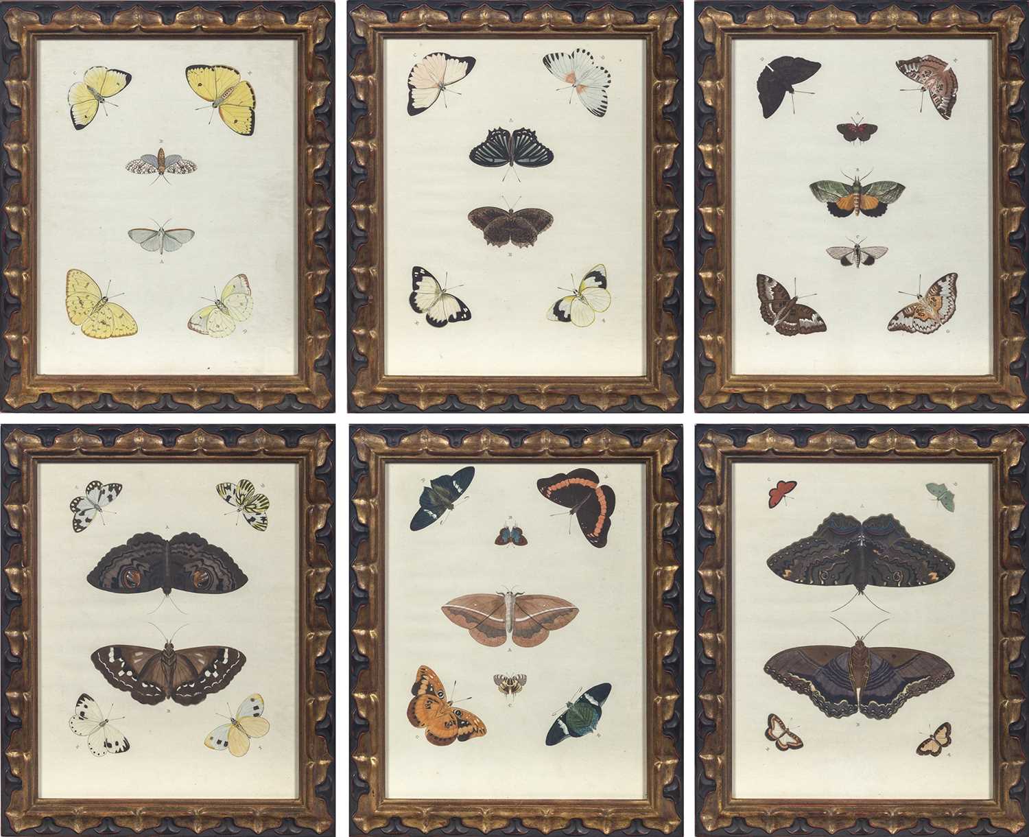 Six hand-colored engravings