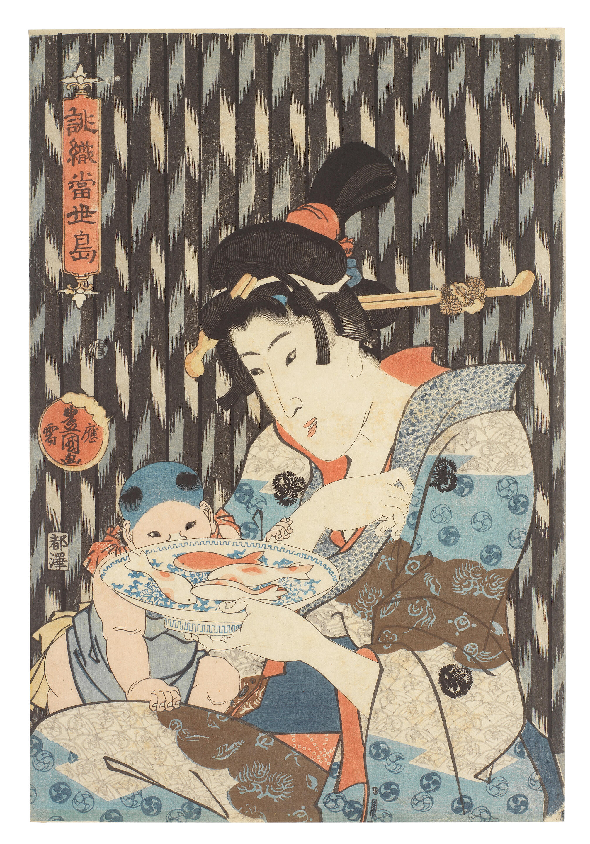 Approximately 40 bijin-ga prints of various sizes and formats by various artists, from the Edo period to the Meiji era, the prints of the Edo period comprising: 12 oban prints (the majority incomplete sheets from triptychs) and four chuban prints by Kunisada; and four prints of various sizes by others including one oban yoko-e by Shunko II (Shunsen); the Meiji-era prints including: five oban tate-e by Chikanobu and 17 further prints by others such as Toshimine, Keishu, Shodo and Kawanabe Kyosai; all variously